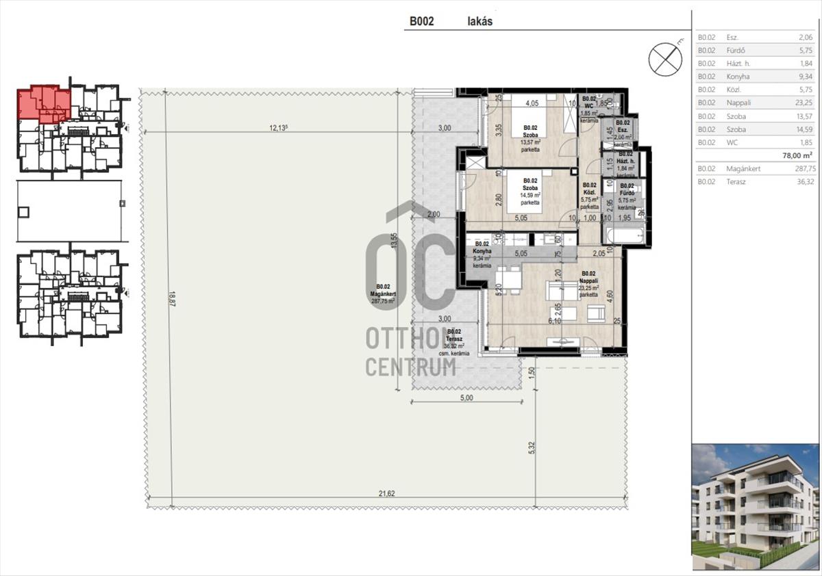 - 78, 06 nm alapterületű, 36, 32 terasszal valamint egy saját 284 nm-es magánkerttel