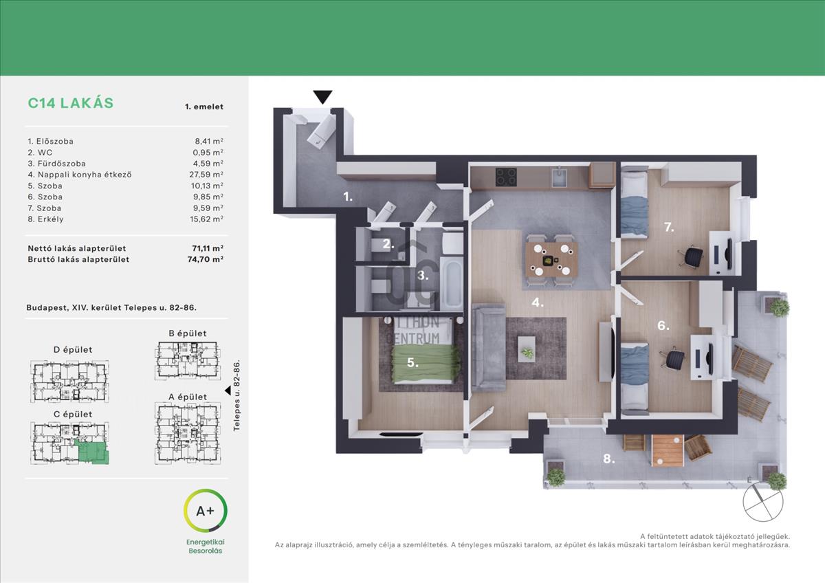 A jelen adatok tájékoztató jellegűek, ezért a Beruházó (sem a hirdető) azok változásával, vagy bármely attól való eltéréssel kapcsolatban semmilyen kötelezettséget, vagy felelősséget nem vállal.