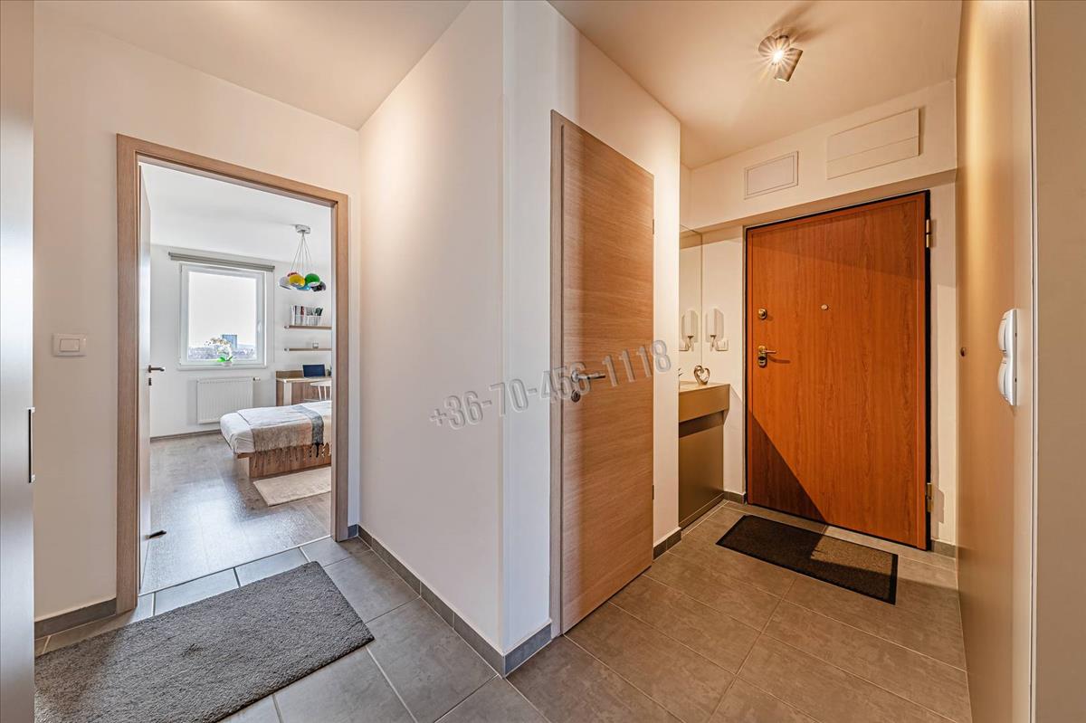 A saját gardróbszekrénnyel rendelkező előszobából külön vendégmosdó is elérhető, ami a mindennapi kényelmet tovább emeli.