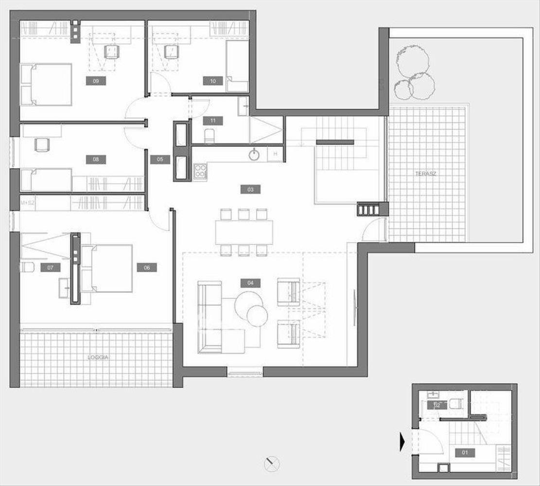 Az ingatlanra 2 emelet építhető, amelyre érvényes Tervtanácsi jóváhagyás is rendelkezésre áll, így a meglévő lakás átalakításával 1+4 lakás azaz összesen 5 lakás kialakítására van lehetőség, ebből egy belső kétszintes és további 4 lakás kialakítására van lehetőség. Erre kész koncepciós terv áll rendelkezésre, de bármilyen más lehetőség is megvalósítható. a mostani koncepciós terv alapján napelem rendszerrel segíthető az energiafelhasználás.
