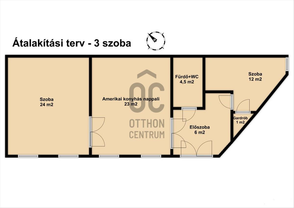 - Jelenleg a 69 nm -es lakás 2 óriás szobával rendelkezik, de könnyűszerrel 3 szobássá alakítható élhető nagy terekkel.