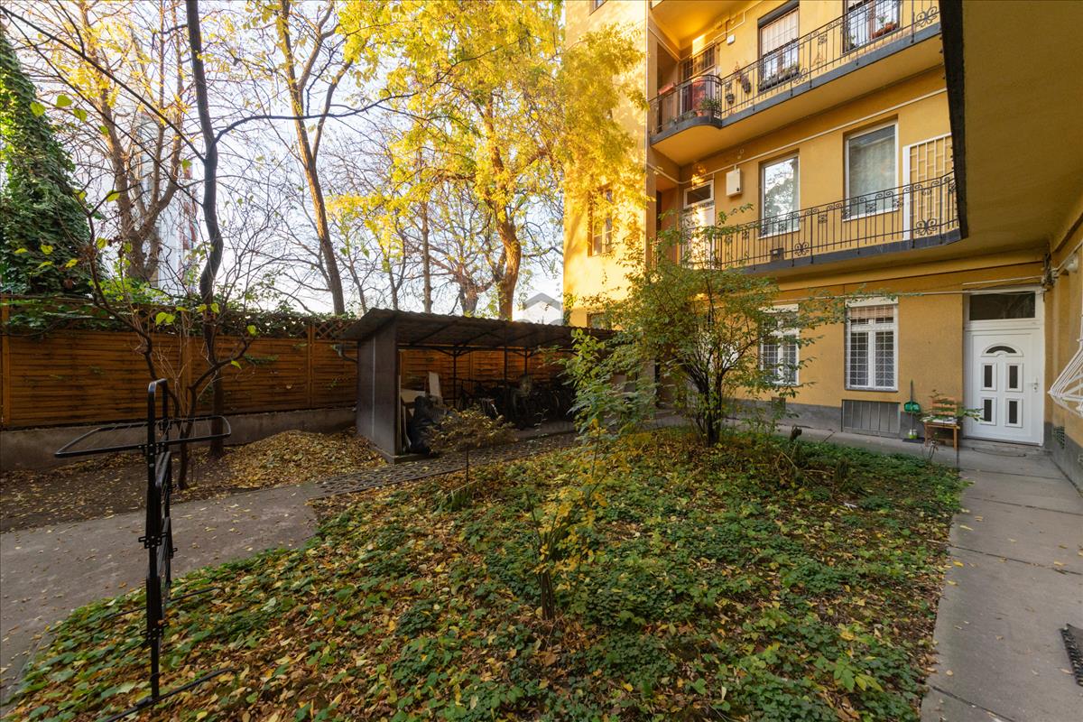 Eladó a 14. kerületben, a Róna utcában 59 m2-es, nappali + 2 hálószobás, kertkapcsolatos, jó állapotú, magasföldszinti tégla lakás, rendezett társasházban!