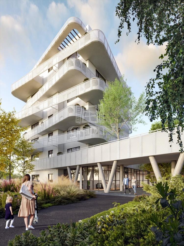 A két épületből álló beruházás során összesen 140 lakás épül, melyek izgalmas vonalvezetésű erkélyei segítik a többlakásos épület harmonikus illeszkedését a ligetes park és a megújult Rákos-patak által létrejövő környezetbe.