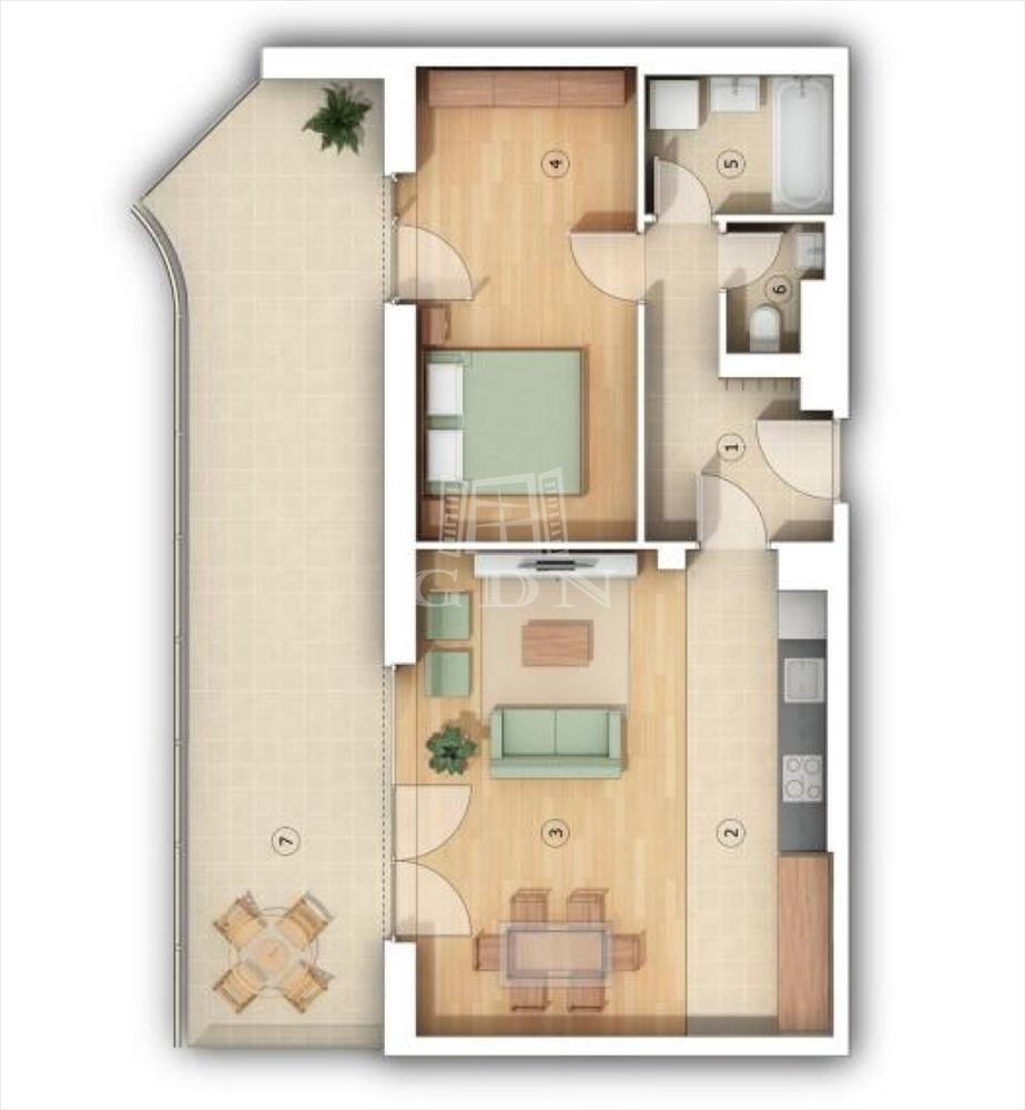 Ez a lakás nappali+1 hálós, 59nm alapterületű+ tartozik hozzá egy 29nm -es terasz is.