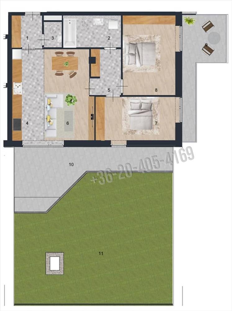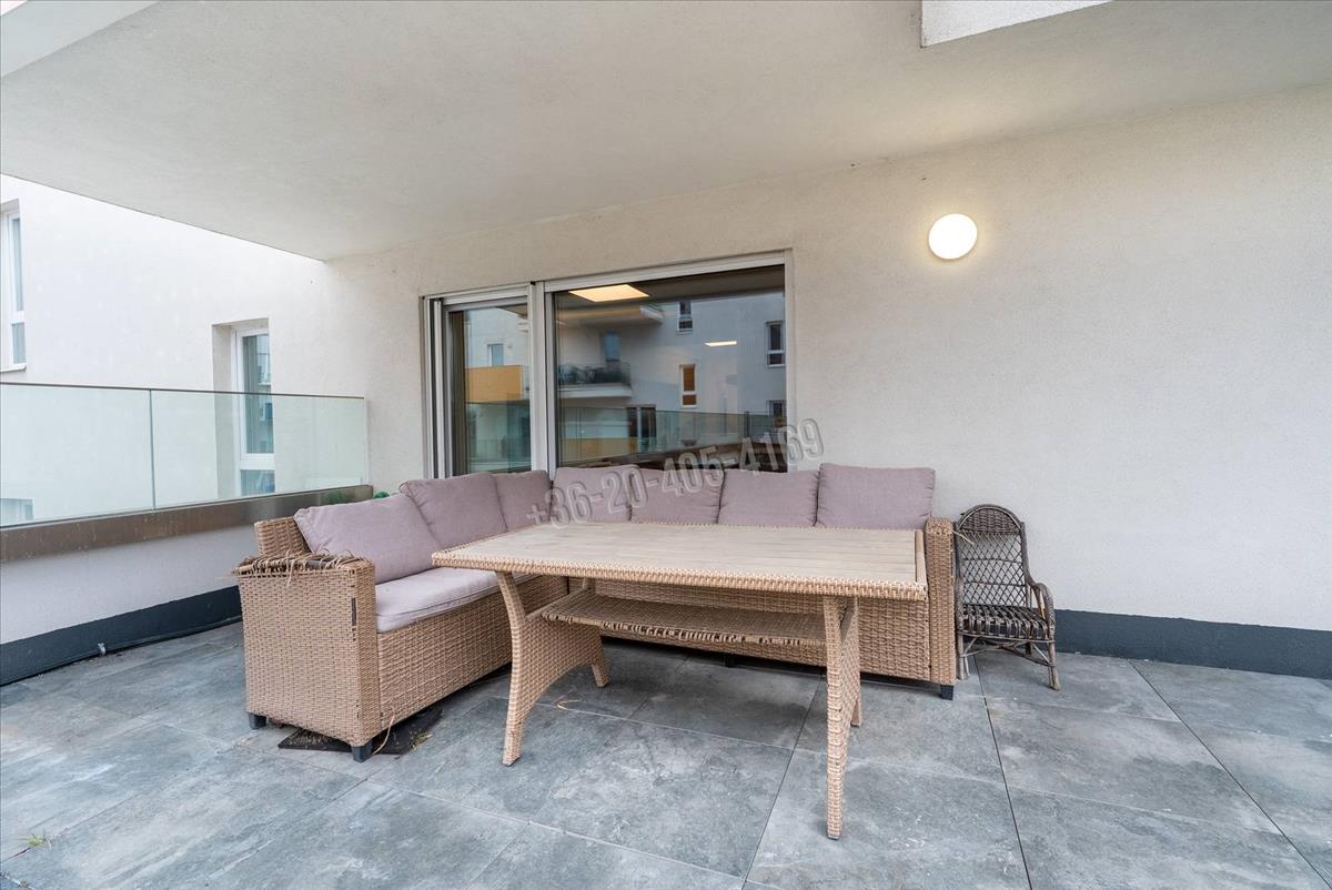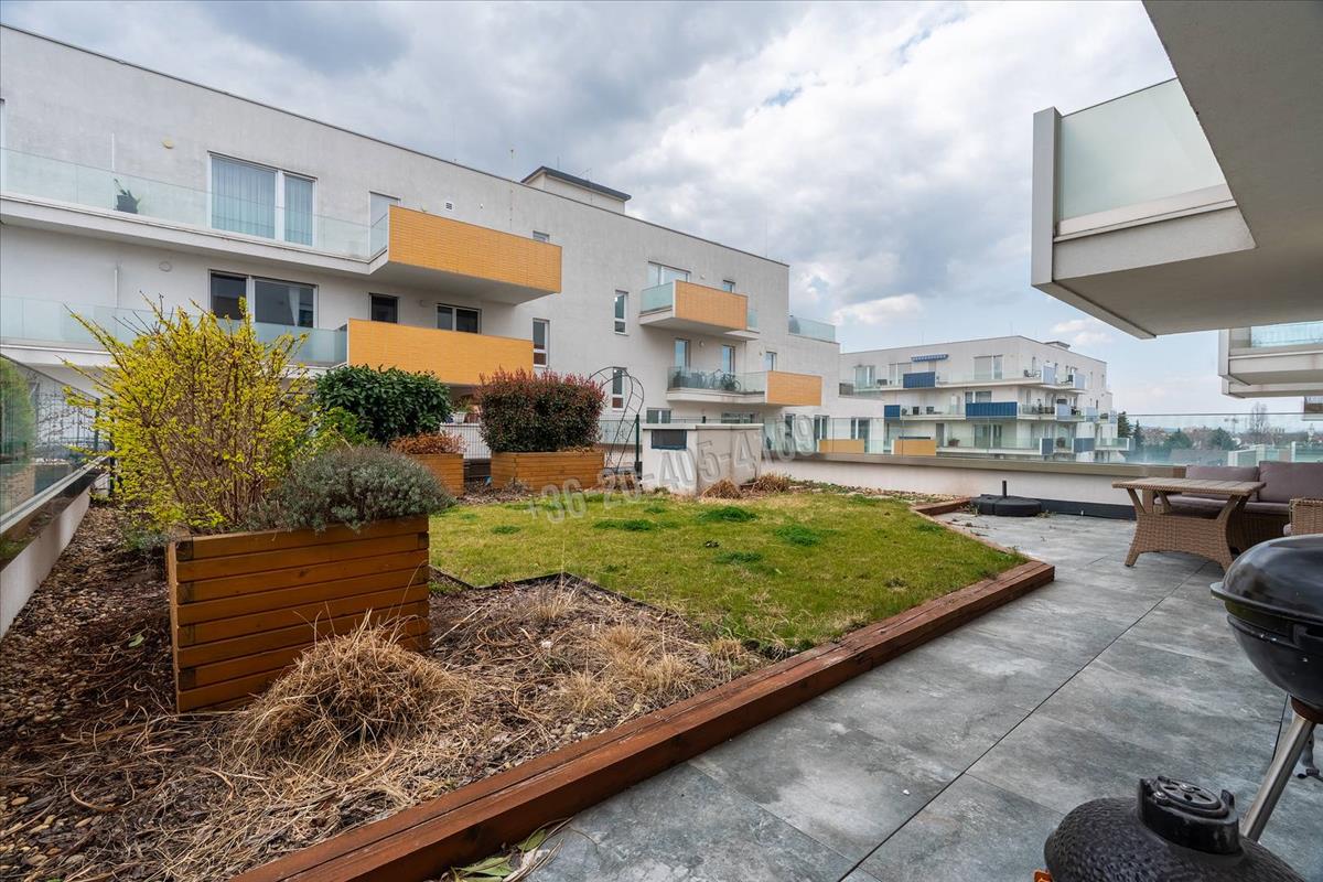 Az ingatlan igazi ritkasága a 70 m²-es privát kert, amelyhez további 23 m²-es részben fedett terasz kapcsolódik, míg a többi helyiségből érhető el a 13 m2-es erkély. a teraszon kialakított, gondozott kert valódi nyugalmi szigetet teremt a városi környezetben – itt tényleg lehet levegőt venni. a kiépített vízvételi lehetőség pedig praktikussá teszi a növények gondozását.