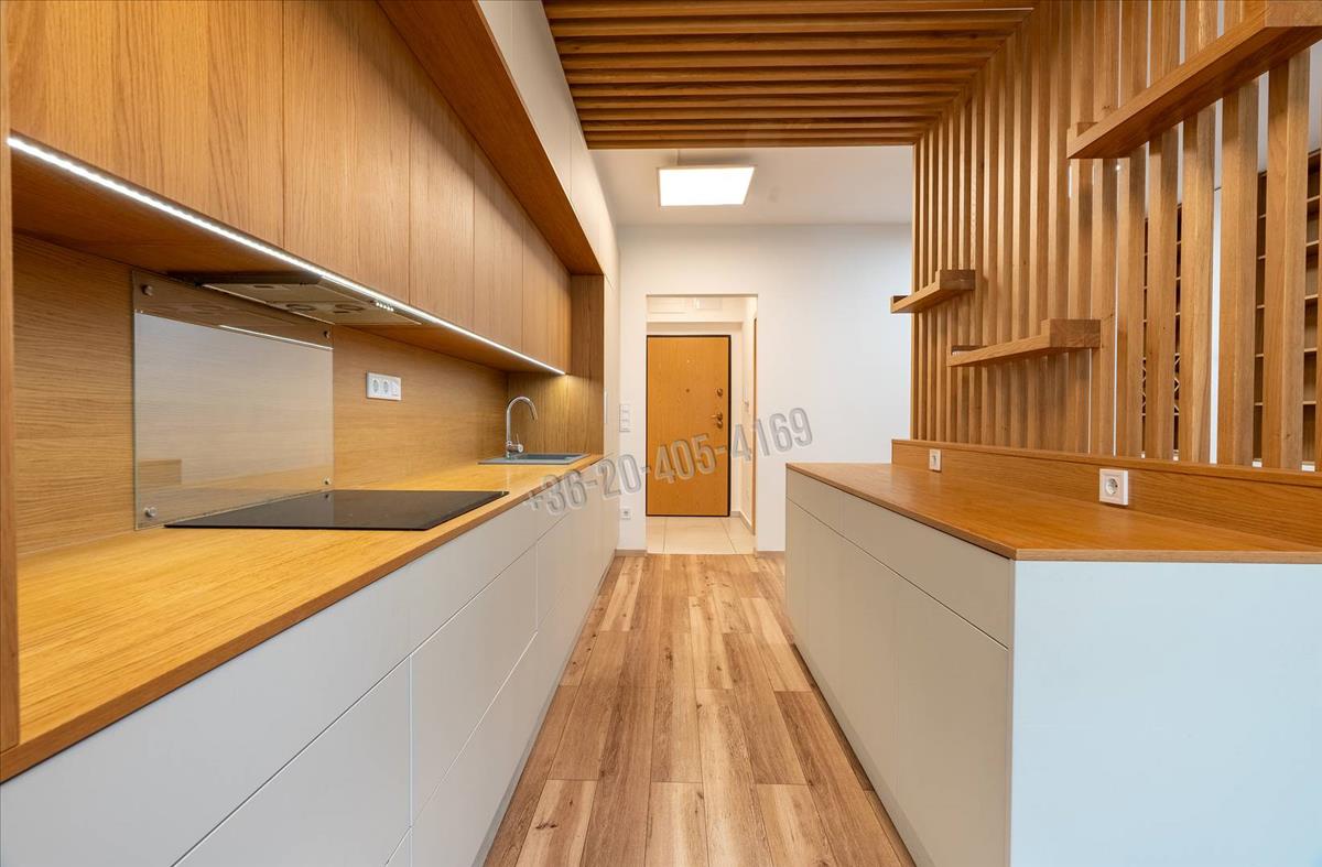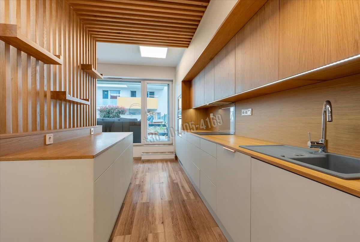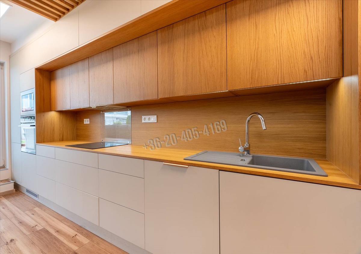 A gépesített konyha (sütő, mosogatógép, hűtő), valamint a beépített bútorok és szekrények a vételár részét képezik – gyakorlatilag azonnal költözhető.
