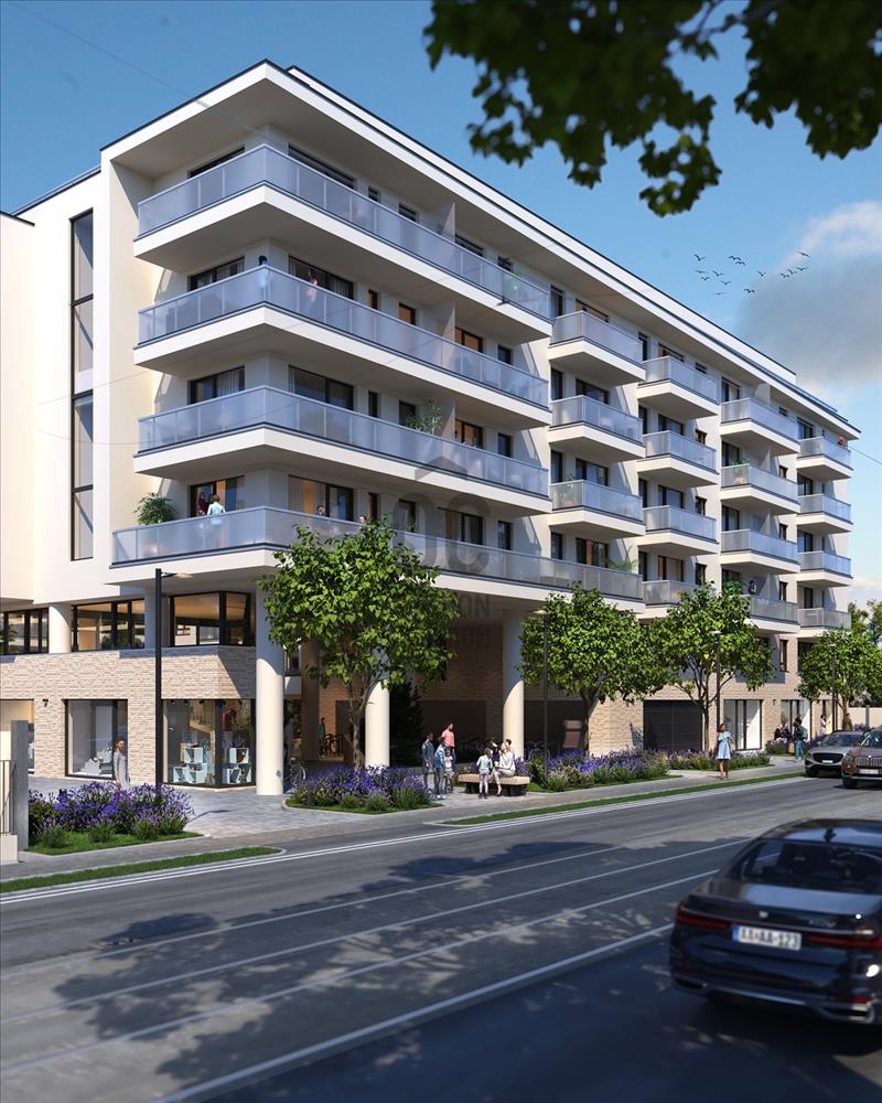 - Széles körű lakáskínálat: a modern kialakítású lakások nappali+1 szobás, illetve nappali+2 szobás elrendezésben érhetők el. Néhány földszinti lakás kertkapcsolattal is rendelkezik, automata öntözőberendezéssel.