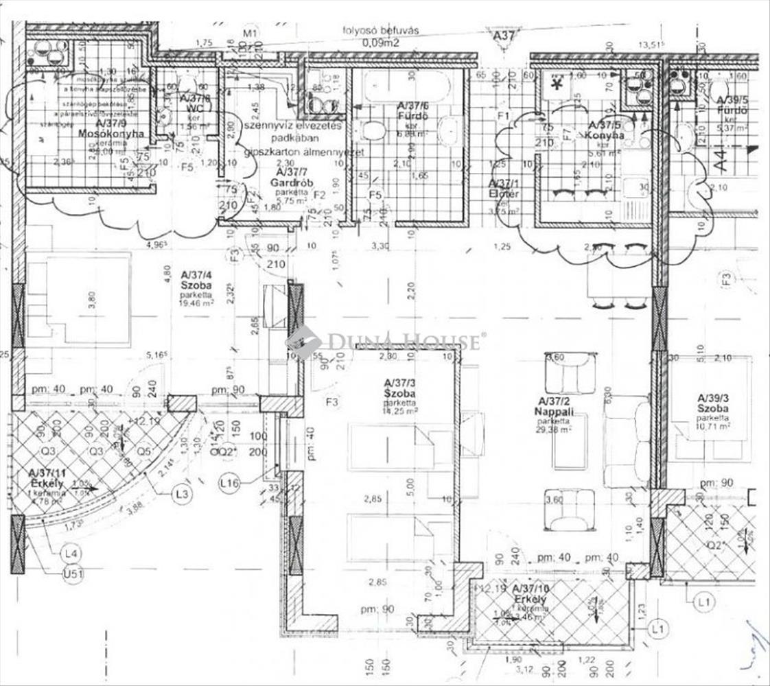 Az ingatlan a társasház 4. emeleti egysége, nagyvonalú térelosztással rendelkezik, nappali-étkező-konyha (35 m2), 2 hálószoba (19, 46 és 14. 25 m2) gardrób szobával, 2 db nagyméretű fürdőszobával (6. 88 És 9 m2), fedett teraszok (3. 45m2 és 4. 78 m2).