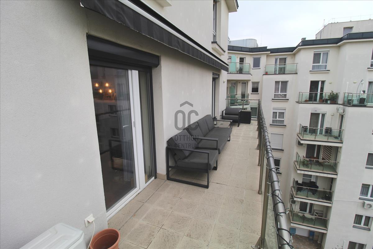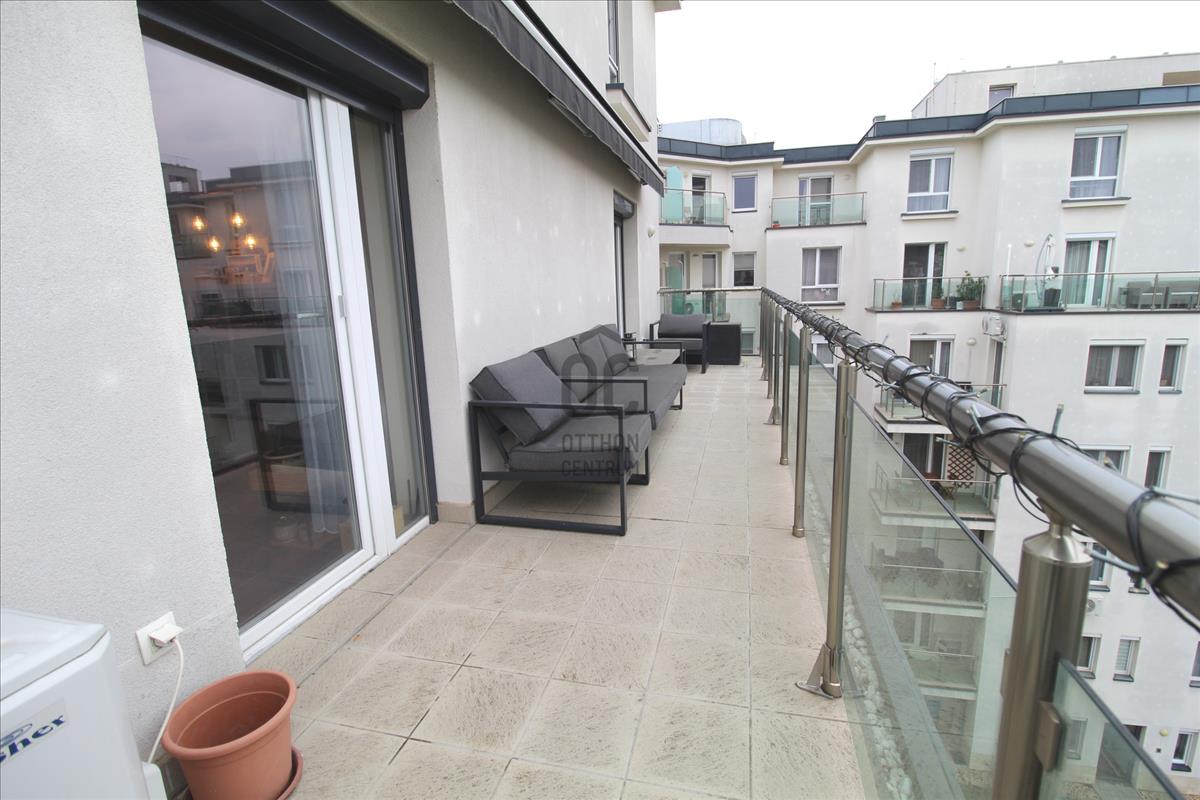 XIV. Alsórákos kedvelt lakóparkjában vált eladóvá ez az amerikai konyhás nappali + nagy hálószobás, gardróbos, 18 nm-es terasszal rendelkező, 52 nm-es, kényelmes, újszerű lakás.- Jól kialakított terek, dizájnos burkolatok