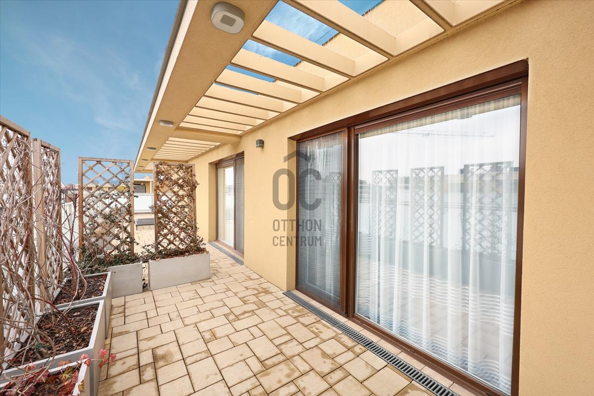 A lakás különlegessége a 120 nm -es terasz, ahol a gyönyörű panoráma mellett élvezheted a friss levegőt és a csendes kertvárosi környezetet.