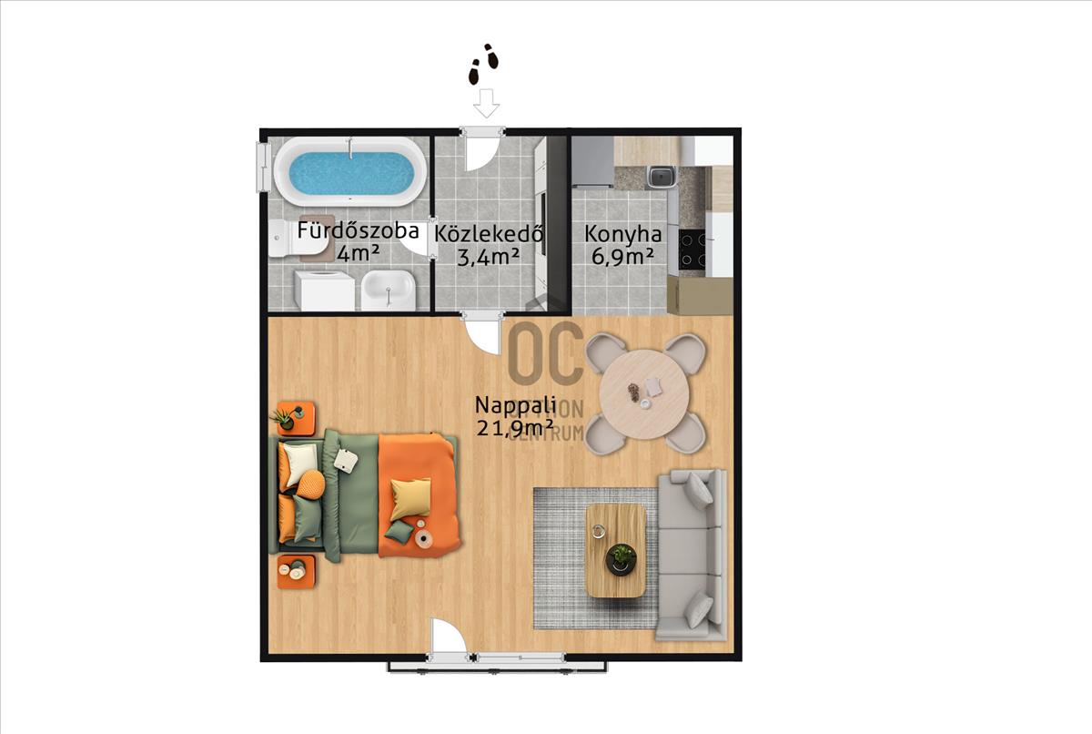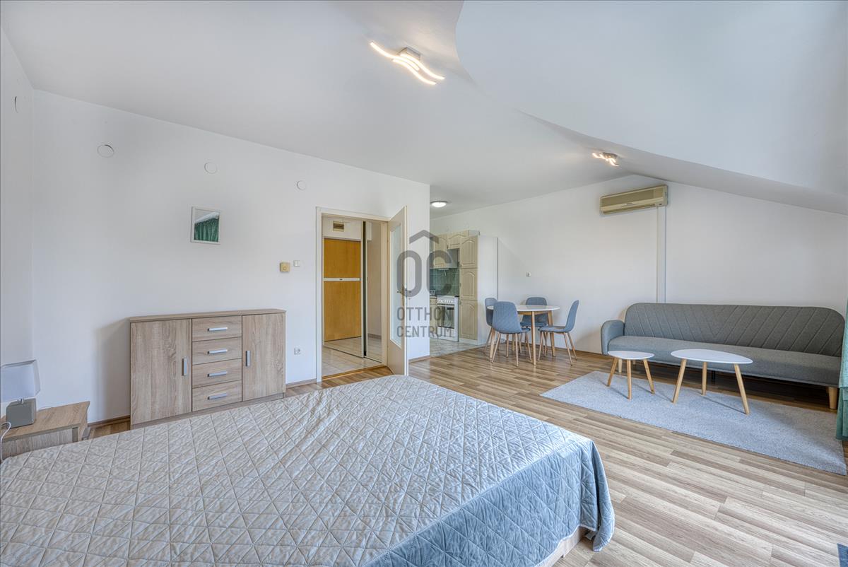 Egy tágas amerikai konyhás nappalival és egy jól felszerelt fürdőszobával rendelkezik, amely a modern életvitel igényeit kielégíti.
