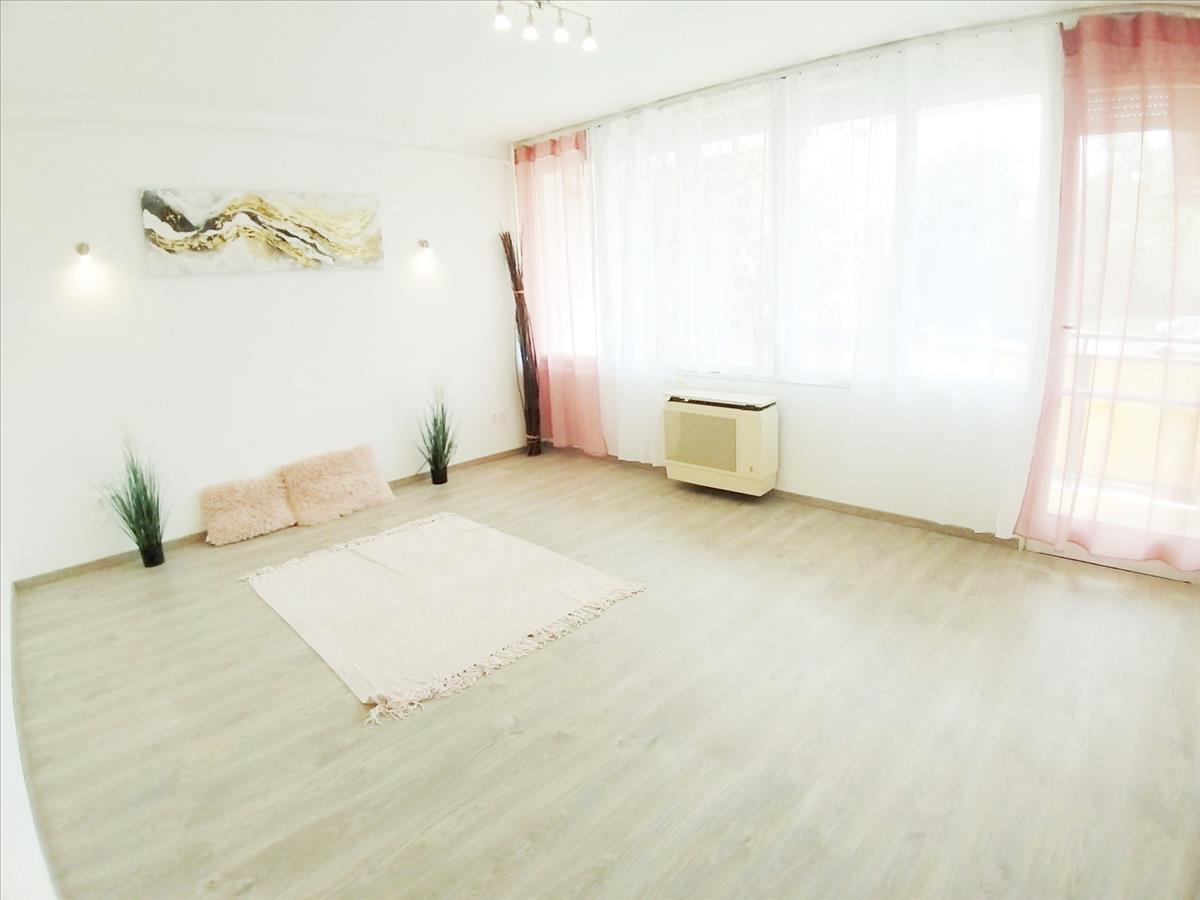 A lakás egy hat lakásos társasház első emeletén van, világos, jó beosztású, nagyon ideális beosztású, külön oldalon helyezkednek el a szobák, a nappalihoz, 7m2-es erkély kapcsolódik, növelve ezzel a teret, és lehetőséget adva, egy kellemes madárcsicsergős kávézásra, esti borozgatásra. . .