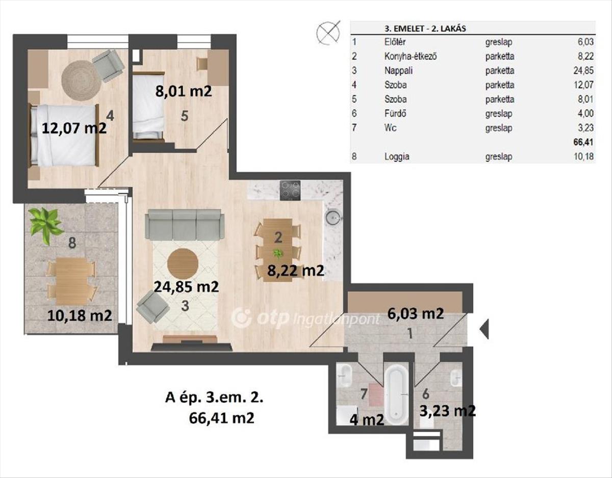 Prémium új építésű otthonok Zuglóban, ahol az infrastruktúra és a nyugalom találkozik. Eladó nappali plusz 2 hálószobás, harmadik emeleti, 66, 41 nm -es lakás. Az otthon kényelméhez hozzájárul továbbá a 10, 18 nm -es loggia. Budapest XIV. kerületének egyik csendes, mégis kiváló közlekedéssel és infrastruktúrával rendelkező részén kínálunk megvételre kiemelkedő minőségű, új építésű lakásokat egy exkluzív, kis lakásszámú projektben. a beruházás két különálló épületből áll, épületenként 3 szint, összesen 22 lakás, amely ideális választás mind saját otthonnak, mind értékálló befektetésnek. Megbízható, tapasztalt kivitelező, osztrák minőségi szemléletet követ. a projektet referenciákkal rendelkező, nagy tapasztalatú kivitelező valósítja meg, aki a munkálatok során szigorúan betartja az osztrák építőipari szabályokat és minőségi előírásokat. Az eredmény: hosszú távon is értékálló, prémium szintű lakóingatlan. Lakástípusok minden élethelyzetre találhatóak itt. Lakásméretek garzontól egészen 5 szobás otthonig. Földszinten kertkapcsolatos lakásokat terveztek. Parkosított, közös használatú belső udvart alakítanak ki szabadidőtöltésre. Főbb jellemzők: modern, energiatudatos műszaki tartalom: házközponti hűtés-fűtés hőszivattyúkkal, oldalfali fan-coil készülékek, napelemes villamosenergia-ellátás, teremgarázsban vásárolható parkolóhelyek, emelő berendezéssel. Kiemelkedő szerkezeti és akusztikai megoldások:hanggátló lakáselválasztó rendszer;- Prémium belső anyaghasználat, pl. Lakásokon belül vízálló laminált padló; fóliázott fehér vagy festhető mdf szegélyek; prémium német villamos anyagok. : Átadás: 2026. Év vége.