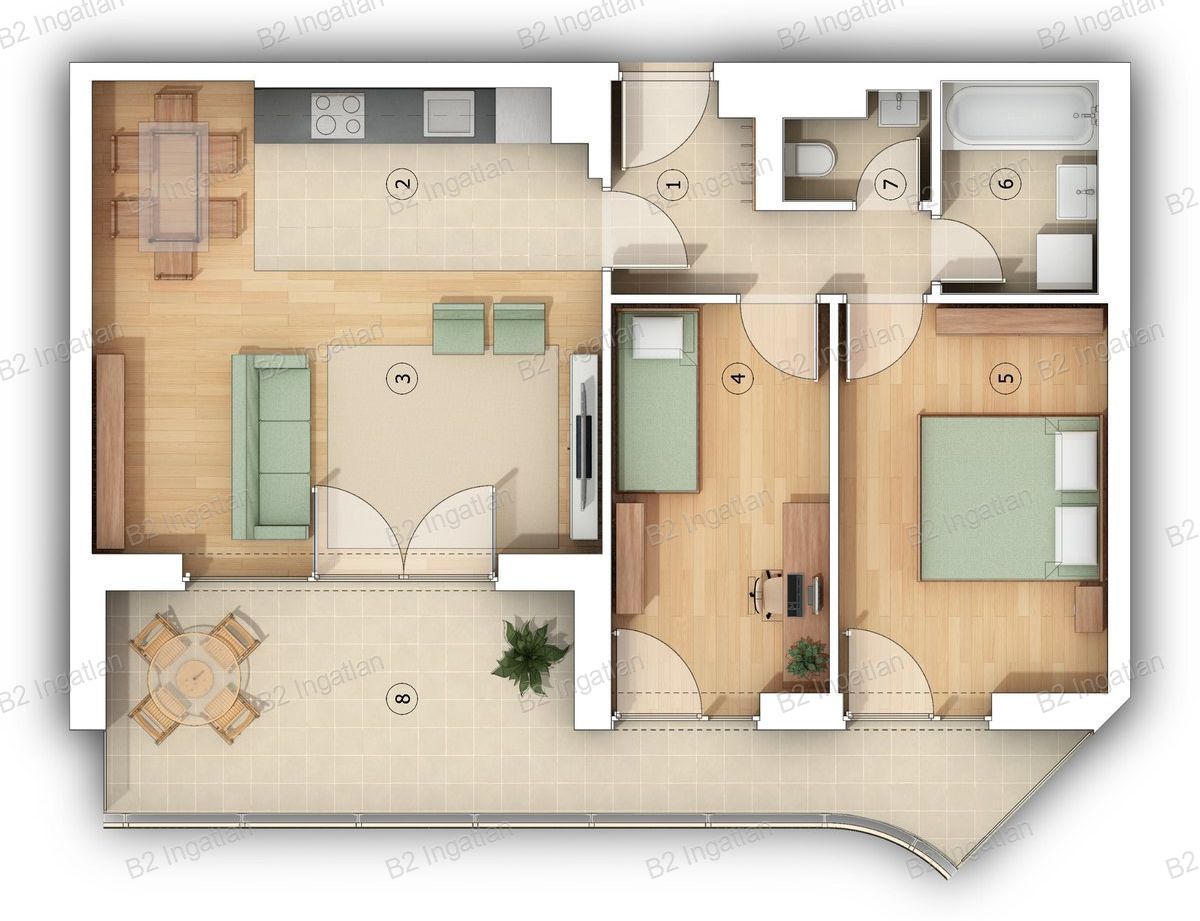 A lakás kényelmes 3 szobás. a szobák ideális méretűek, külön nyílnak Amerikai konyhás nappali tágas teret kínai a családi együttlétekhez. Az erkély szintén tágas, 17, 82 m2-es mindegyik helyiségből megközelíthető.