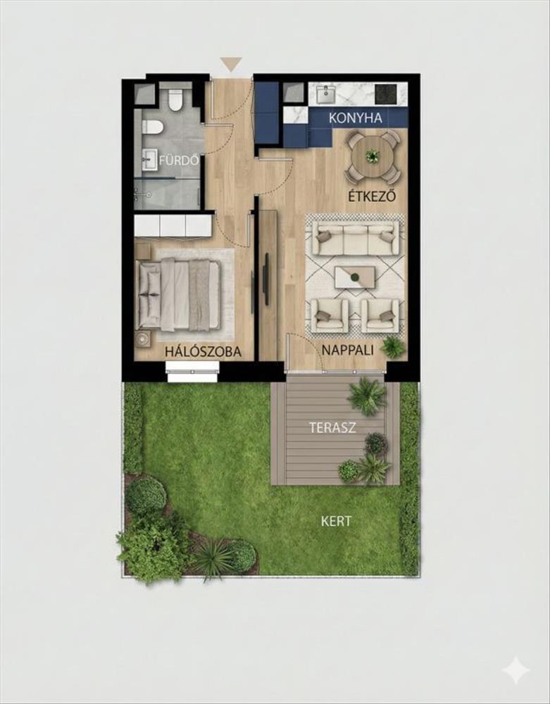 •Külső területek: 6, 72 m²-es terasz és 26, 26 m²-es kizárólagos használatú saját kertrész.