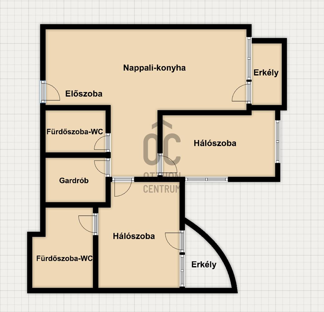A lakás praktikus, jól átgondolt elrendezésű, ahol a tágas közösségi terek és a privát helyiségek harmonikusan elkülönülnek.