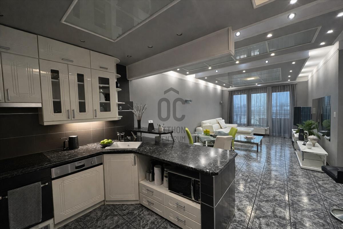 Amerikai konyhás nappali, modern beépített konyhabútorral és gépekkel felszerelve