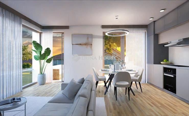Padlőfűtés, hőszívattyú és korszerű nyílászárók gondoskodnak az energiatakarékos fenntartásról. a lakáshoz kötelezően megvásárolandó biztonságos teremgarázs és komfortos tároló tartozik.