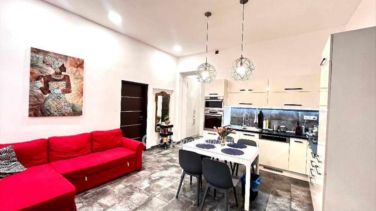 Az ingatlan a tulajdoni lapon 2 szobásként szerepel, de a felújítás során egy amerikai konyhás nappali és további 2 külön nyíló szoba került kialakításra, így a tér praktikus és sokoldalúan használható.