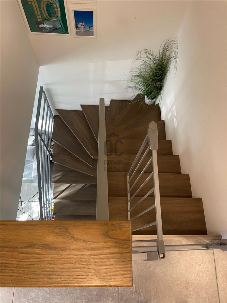 A földszinten világos nappali–konyha–étkező, vendég-WC és közvetlen kijárat a 72 m² saját kertbe – ideális játszótérnek, grillezéshez vagy közös családi estékhez.