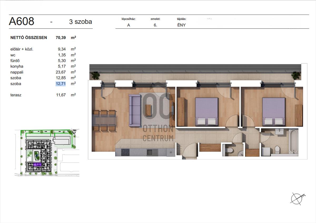 Nettó alapterület: 70,39 m2 + 11,67 m2 erkély. Projekt bemutat...