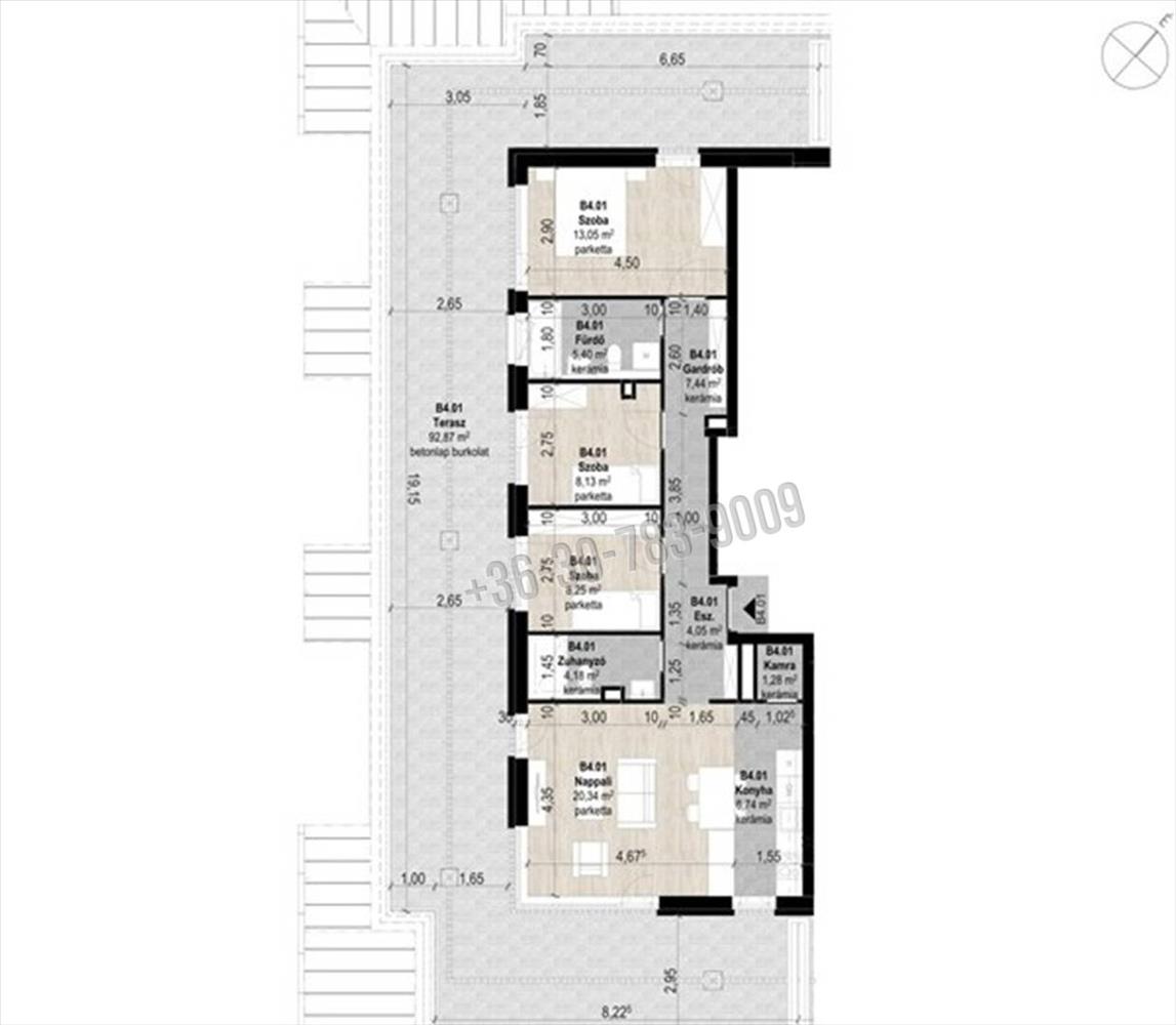 Penthouse: nettó 79nm lakás (4szoba) + 93nm erkély