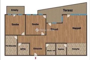 Penthouse jellegű, prémium okosotthon a 2024-ben átadott új építésű Belsőparkos TÁRSASHÁZBANEladó 2024-ben épült, modern, téglaépítésű, társasház legfelső szintjén található, nettó 103 m²-es, déli tájolású napfényes, penthouse jellegű lakás, minden szoba terasszal erkéllyel kapcsolattal rendelkezik. Átgondolt elrendezésű otthon helyiségei: előtér, nappali, konyha, kamra, étkező, két hálószoba, fürdőszoba, külön mosdó WC-vel, háztartási helyiség.