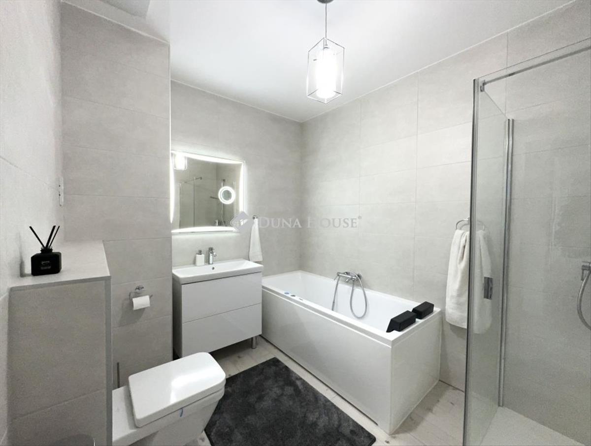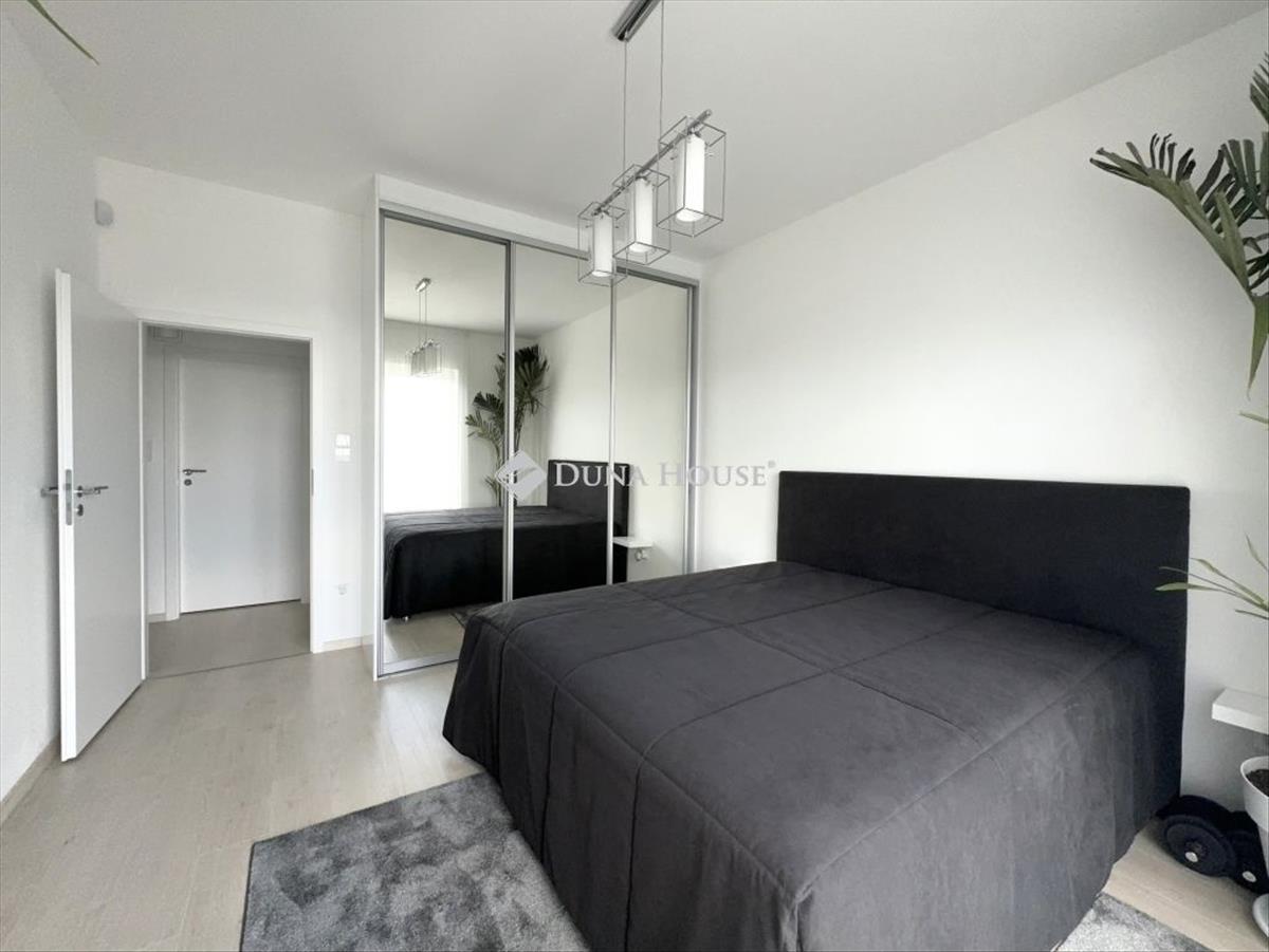 Penthouse jellegű, prémium okosotthon a 2024-ben átadott új építésű Belsőparkos TÁRSASHÁZBANEladó 2024-ben épült, modern, téglaépítésű, társasház legfelső szintjén található, nettó 103 m²-es, déli tájolású napfényes, penthouse jellegű lakás, minden szoba terasszal erkéllyel kapcsolattal rendelkezik. Átgondolt elrendezésű otthon helyiségei: előtér, nappali, konyha, kamra, étkező, két hálószoba, fürdőszoba, külön mosdó WC-vel, háztartási helyiség. a lakás alakítható - az eredeti tervek szerint az előszoba és a jelenleg étkezőként használt helyiség között egy ajtó került betervezésre, beépítésével akár külön lakrész is kialakítható. a lakás letisztult minimalista stílusban berendezett, minőségi bútorokkal és gépekkel felszerelt, . Okos-otthon rendszerrel ellátott, ami mobiltelefonról vezérelhetők: beépített riasztórendszer; fűtés és hűtés; energia-hatékony mennyezeti és geotermikus hűtés-fűtés hőszivattyúval; padlófűtés a fürdőszobában, előtérben és WC-ben; állítható fényerejű led világítás; motoros redőnyök; bejárati okos kilincs; főzőlap, sütő, mosogatógép, mosógép és szárítógép, beépített Bosch konyhai gépek;A rendszer biztonsági riasztásokat is küld (behatolás, vízszivárgás, füstérzékelés esetén). a hirdetett ár tartalmazza: beépített bútorok; beépített Bosch konyhai gépek; teljes mesh WiFi rendszer; pezsgőfürdős, színterápiás fürdőkád; okos konnektorok és kapcsolók; szőnyegek, függönyök; tartalék burkolatok: csempe, padlócsempe, vízálló padló. További igényes bútorok (ülőgarnitúra, ágyak, asztalok, székek) és elektronikai eszközök (lg oled TV-k, Sonos hangrendszer, Bosch-, lg-, Xiaomi gépek), valamint növények megegyezés szerint külön megvásárolhatók. Egyéb műszaki jellemzők: hőszigetelt műanyag nyílászárók; vízálló laminált és kerámia burkolatok; önálló mérőórák minden közműre; az ingatlanra és több berendezésre még érvényes gyártói garancia. Elhelyezkedés, infrastruktúra:KÖKI Terminál, a Shopmark bevásárlóközpontok Spar, Penny, Aldi, Lidl, dm, Jysk, Pizza Hut, valamint a Remiz Üzletház, a, illetve piac, iskolák, óvodák, orvosi rendelők, gyógyszertárak - mind a közelben. Tömegközlekedés: 50-es, 42-es villamosok, 93-as, 136-os, 914-es, 950-ös buszok, s21 vonat, az m3 metró 10 perc alatt elérhető. Fenntartási költség:A havi közös költség és felújítási alap összege 54 826 Ft, amely minden közüzemi díjat is tartalmaz, kivéve a háztartási villamos energiát (havi átlagköltsége kevesebb mint 7 000 Ft) és a Telekom-szolgáltatásokat. Ez a lakás kiváló választás mindazoknak, akik magas minőséget, modern technológiát és letisztult dizájnt keresnek.