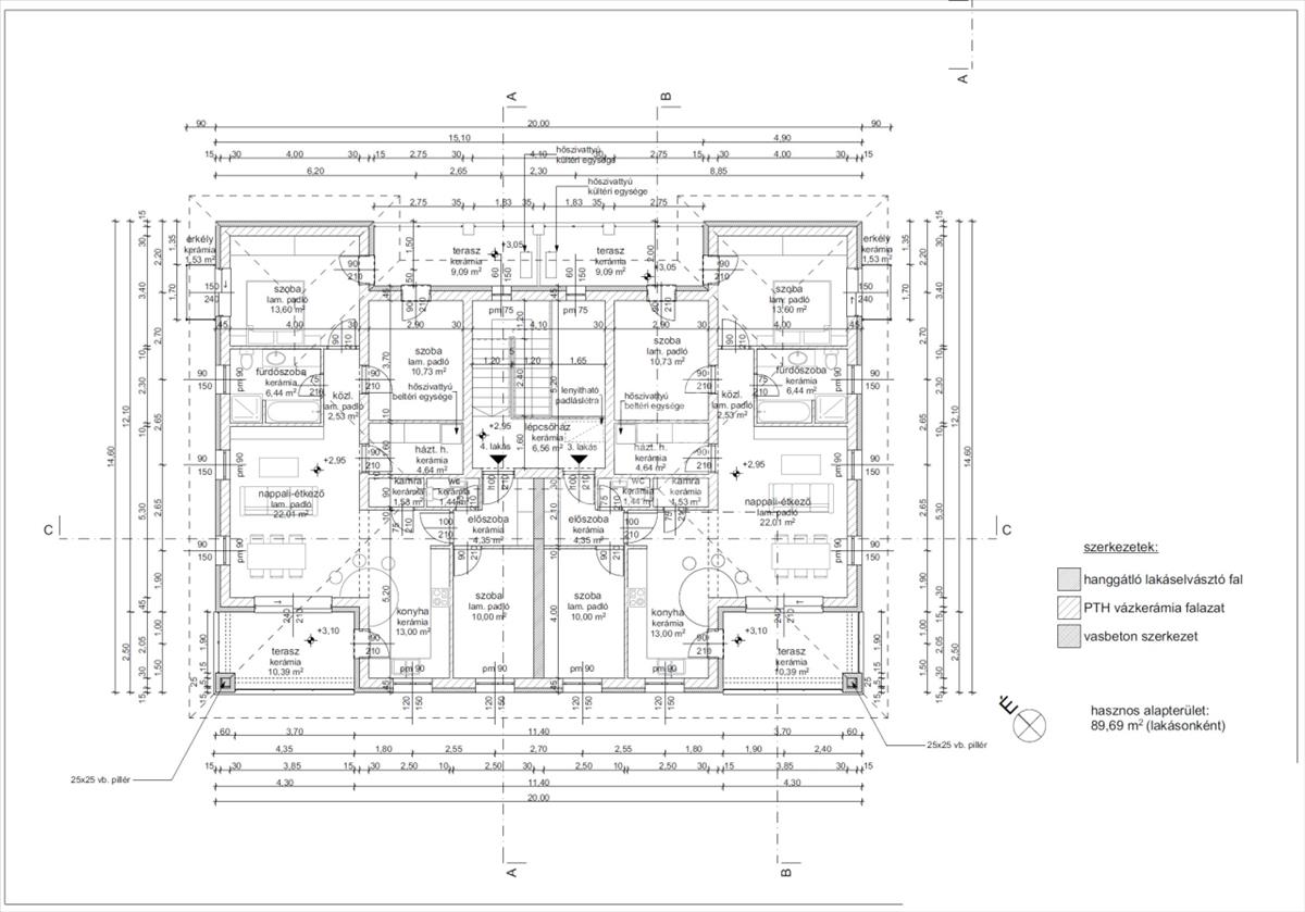 -Lakás alapterület: 89, 69 m² + erkélyek 9, 09 és 10, 39 m²
