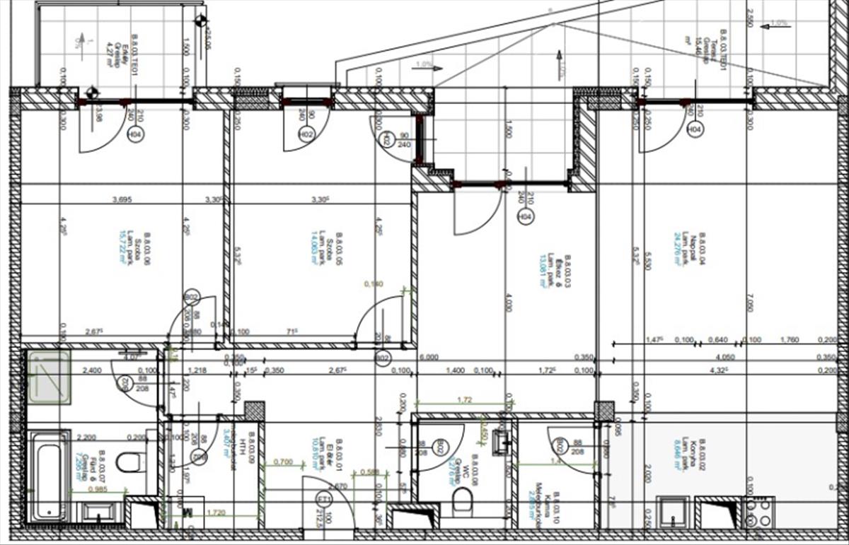 103nm-es, 3 szobás, penthouse jellegű, 8. emeleti, két terasszal rendelkező lakást*