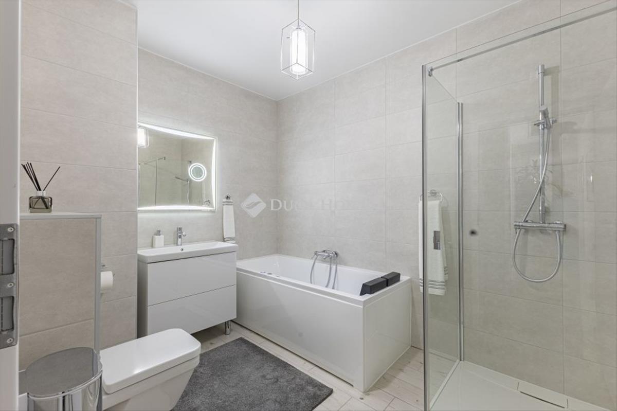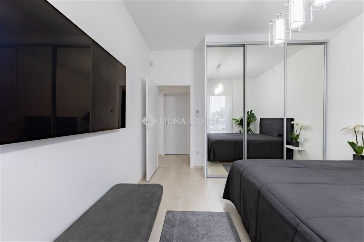 Penthouse jellegű, prémium okosotthon a 2024-ben átadott új építésű Belsőparkos TÁRSASHÁZBANEladó 2024-ben épült, modern, téglaépítésű, társasház legfelső szintjén található, nettó 103 m²-es, déli tájolású napfényes, penthouse jellegű lakás, minden szoba terasszal erkéllyel kapcsolattal rendelkezik. Átgondolt elrendezésű otthon helyiségei: előtér, nappali, konyha, kamra, étkező, két hálószoba, fürdőszoba, külön mosdó WC-vel, háztartási helyiség. a lakás alakítható - az eredeti tervek szerint az előszoba és a jelenleg étkezőként használt helyiség között egy ajtó került betervezésre, beépítésével akár külön lakrész is kialakítható. a lakás letisztult minimalista stílusban berendezett, minőségi bútorokkal és gépekkel felszerelt, . Okos-otthon rendszerrel ellátott, ami mobiltelefonról vezérelhetők: beépített riasztórendszer; fűtés és hűtés; energia-hatékony mennyezeti és geotermikus hűtés-fűtés hőszivattyúval; padlófűtés a fürdőszobában, előtérben és WC-ben; állítható fényerejű led világítás; motoros redőnyök; bejárati okos kilincs; főzőlap, sütő, mosogatógép, mosógép és szárítógép, beépített Bosch konyhai gépek;A rendszer biztonsági riasztásokat is küld (behatolás, vízszivárgás, füstérzékelés esetén). a hirdetett ár tartalmazza: beépített bútorok; beépített Bosch konyhai gépek; teljes mesh WiFi rendszer; pezsgőfürdős, színterápiás fürdőkád; okos konnektorok és kapcsolók; szőnyegek, függönyök; tartalék burkolatok: csempe, padlócsempe, vízálló padló. További igényes bútorok (ülőgarnitúra, ágyak, asztalok, székek) és elektronikai eszközök (lg oled TV-k, Sonos hangrendszer, Bosch-, lg-, Xiaomi gépek), valamint növények megegyezés szerint külön megvásárolhatók. Egyéb műszaki jellemzők: hőszigetelt műanyag nyílászárók; vízálló laminált és kerámia burkolatok; önálló mérőórák minden közműre; az ingatlanra és több berendezésre még érvényes gyártói garancia. Elhelyezkedés, infrastruktúra:KÖKI Terminál, a Shopmark bevásárlóközpontok Spar, Penny, Aldi, Lidl, dm, Jysk, Pizza Hut, valamint a Remiz Üzletház, a, illetve piac, iskolák, óvodák, orvosi rendelők, gyógyszertárak - mind a közelben. Tömegközlekedés: 50-es, 42-es villamosok, 93-as, 136-os, 914-es, 950-ös buszok, s21 vonat, az m3 metró 10 perc alatt elérhető. Fenntartási költség:A havi közös költség és felújítási alap összege 54 826 Ft, amely minden közüzemi díjat is tartalmaz, kivéve a háztartási villamos energiát (havi átlagköltsége kevesebb mint 7 000 Ft) és a Telekom-szolgáltatásokat. Ez a lakás kiváló választás mindazoknak, akik magas minőséget, modern technológiát és letisztult dizájnt keresnek.