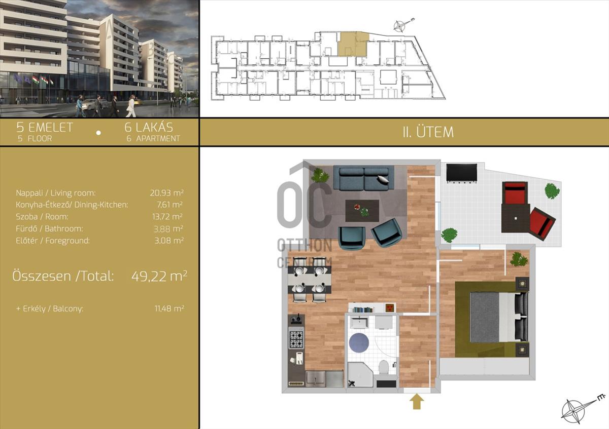 Az épületegyüttesben összesen 350 lakás készül, ebből az i. Ütemben 98 db, a II. Ütemben 118 db. Épül meg.