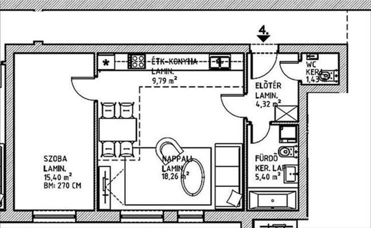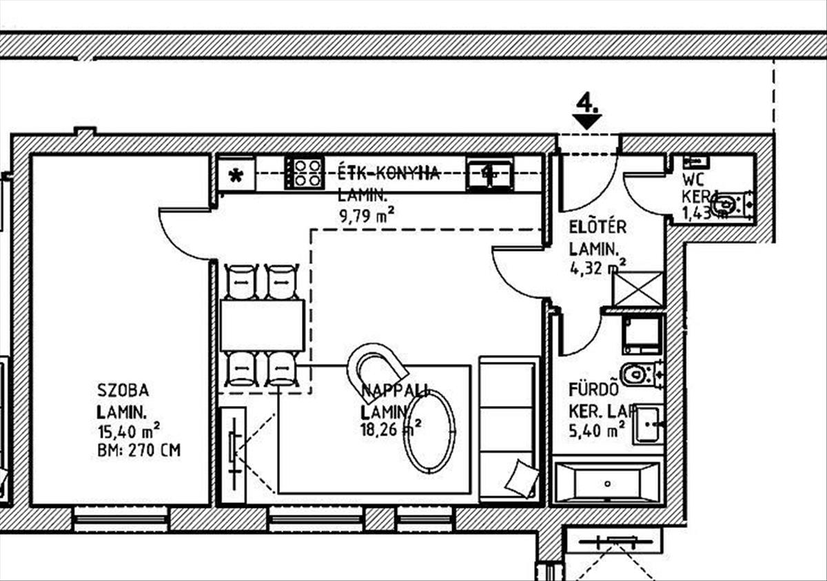 A lakásban tágas amerikai konyhás nappali, 1 szoba, fürdőszoba, előszoba és mellékhelyiség kerül kialakításra.