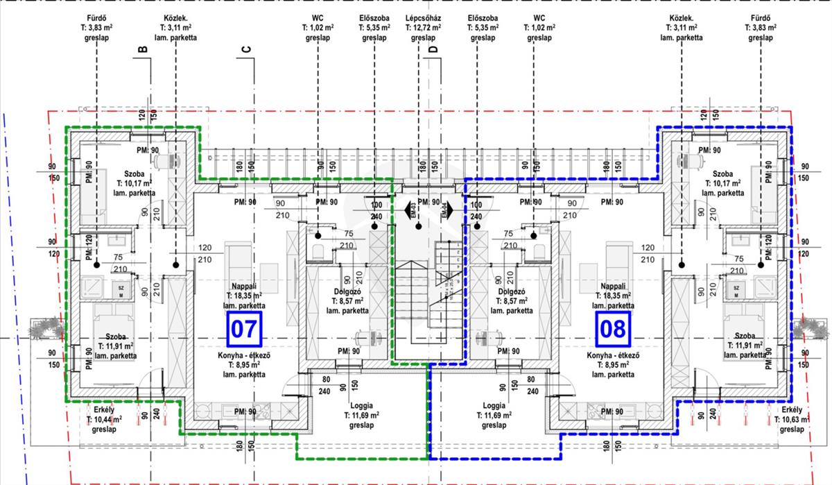 Az ingatlan egyik legnagyobb vonzereje az első emeleti elhelyezkedés, amelyhez két tágas erkély is tartozik. Ez a különleges kialakítás lehetővé teszi, hogy a lakók több irányból is élvezhessék a friss levegőt és a környék nyugalmát: legyen szó egy reggeli kávézásról az egyik erkélyen, vagy az esti kikapcsolódásról a másikon. a dupla erkély nemcsak a térérzetet növeli, de privát és biztonságos kültéri pihenőhelyet biztosít a magasban.
