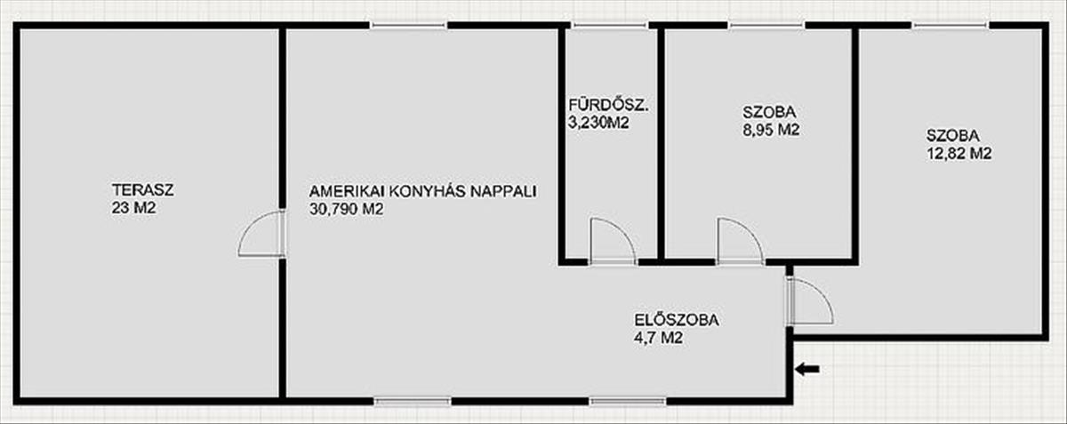 A lakásban tágas étkezős amerikai konyhás nappali, 2 szoba, fürdőszoba kerül kialakításra és tartozni fog hozzá egy 23 m2-es terasz is.
