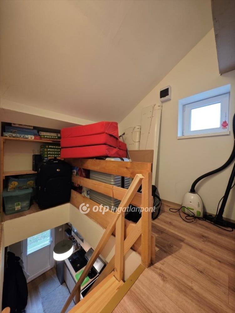 A felső szinten egy gardróbnak ideális közlekedő és egy bruttó több, mint 11 nm-es tetőtéri szoba áll rendelkezésre. Az épület bővítésével lehetőség van akár egy emeleti fürdőszoba vagy még egy helyiség kialakítására.