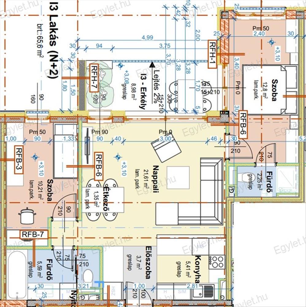 A lakás nettó mérete erkély nélkül: 63 nm.