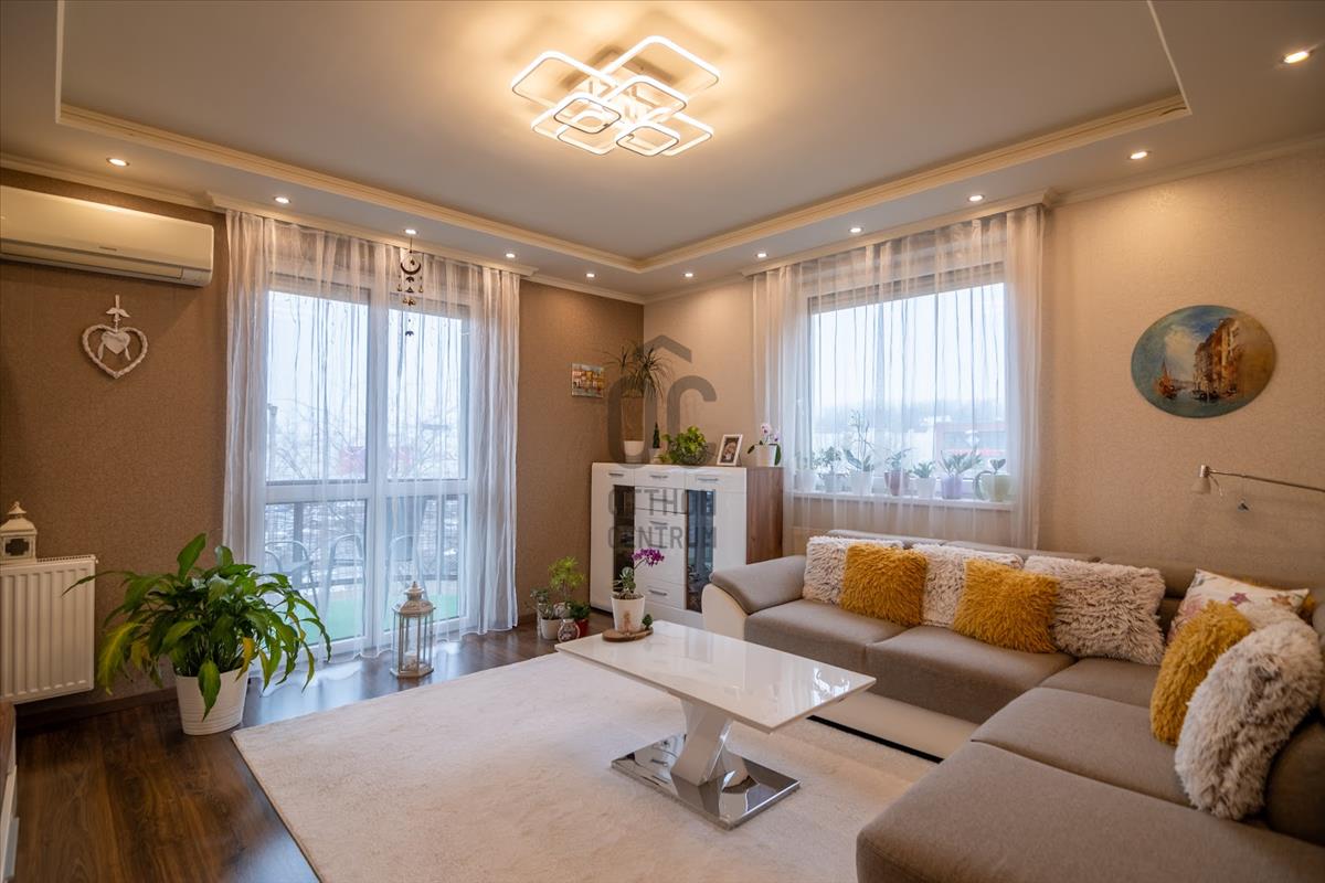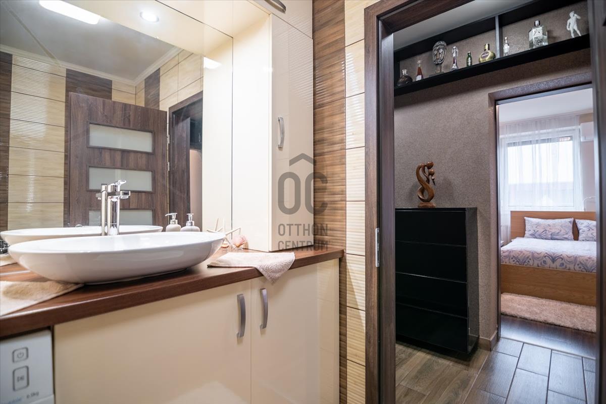 A lakás világos, napfényes terekkel rendelkezik, amelyek a beépített bútorok és szekrények révén maximálisan kihasználják a rendelkezésre álló teret. a modern led hangulatvilágítás pedig extra stílust és kényelmet ad a lakásnak.
