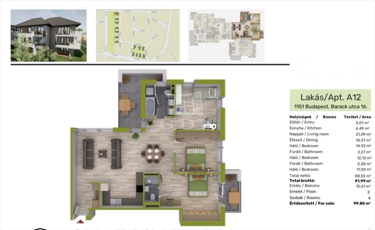 Eladó egy új építésű, 92 m²-es lakás a XV. kerületben, Rákospalota közkedvelt részén, a Barack utcában. Az i. Fázis, 2026-ban fog átadásra kerülni, mely az alábbi jellemzőkkel fog rendelkezni: