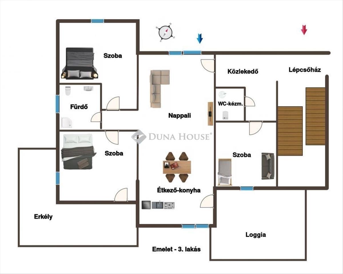 A 15. kerületben, kítűnő közlekedéssel, közel az m3 bevezetőhöz, de mégis csendes, nyugodt, frissen alakított újépítésű részen épül ez a 4 lakásos társasház, két emeleti és két földszinti lakás kialakításával. a földszinti lakásokhoz kertkapcsolat tartozik és az ingatlanon belül kialakított garázs, az emeleti lakásokhoz felszíni beálló kapcsolódik majd. a földszinti lakásokhoz fedett terasz, míg az emeleti lakásokhoz lakásonként egy tágas erkély és egy loggia is kialakításra kerül. a földszinti lakások nappali + 2 szobás kialakításúak, az emeleti lakások pedig nappali + 3 szoba kínálta tágas terekkel várják leendő lakóikat. a tetőtérben 4 tároló lesz kialakítva, melyek darabonként 2, 5 MFt-ért lesznek megvásárolhatóak igény esetén. Otthon Start hitellel is megvásárolhatóak a lakások! Az építkezés 2026. Márciusában kezdődik el, már most minden engedély rendelkezésre áll. a lakások átadása 2027. Szeptemberében várható. Ez a lakás az emeleten helyezkedik el, nappali + 3 hálós, nagy erkély plusz egy loggia kialakítással, opcionálisan megvásárolható felszíni autóbeállóval és a tetőtérben kilakított tárolóval.