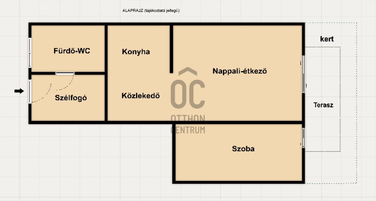 A 2 szobás földszinti lakáshoz 14, 7 nm -es terasz és 27, 8 nm -es saját kert tartozik.
