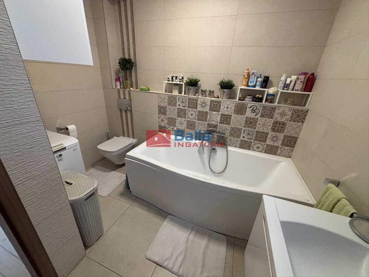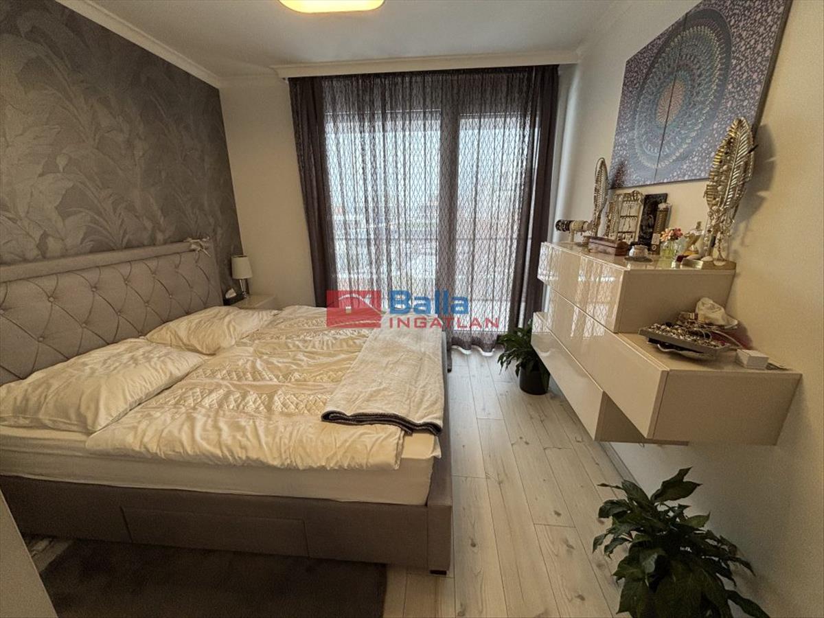 A 82 nm-es lakóterületen amerikai konyhás nappali, 2 hálószoba, 2 fürdő, gardrób és előszoba található. Az igényes beépített bútorok a vételár részét képezik.