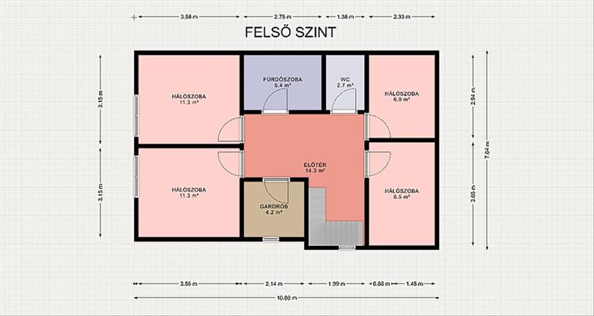 előtér, négy szoba, gardrób, fürdőszoba, külön mellékhelyiség