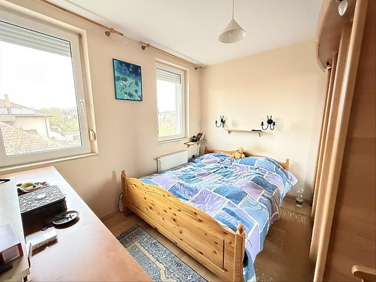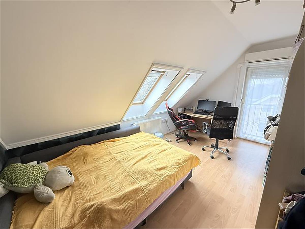 A szobák külön nyílóak, laminált burkolattal, míg a konyha és a vizes helyiségek járólaposak. a fűtésről turbós kombi cirkó gondoskodik egyedi méréssel. Az alsó szinten műanyag, a tetőtérben fa nyílászárók találhatók, redőnnyel ellátva. a lakás duplakomfortos: az alsó szinten kádas fürdőszoba, míg az emeleten zuhanyzós fürdőszoba és külön mellékhelyiség került kialakításra. a 6 m²-es erkély a nappaliból közvetlenül megközelíthető, kellemes kültéri életteret biztosít. a beépített bútorok a vételár részét képezik.