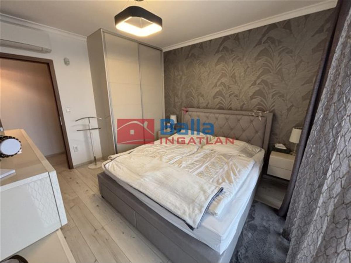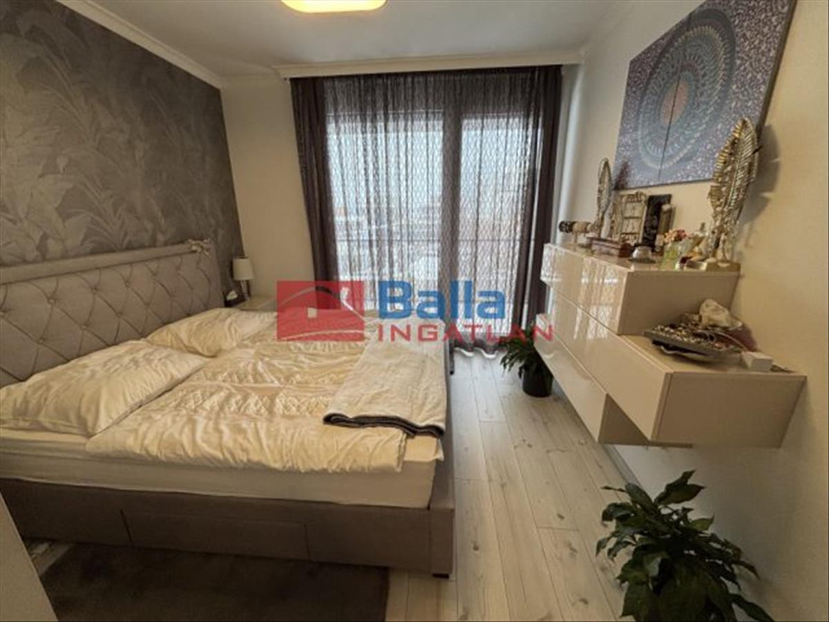 A 82 nm -es lakóterületen amerikai konyhás nappali, 2 hálószoba, 2 fürdő, gardrób és előszoba található. Az igényes beépített bútorok a vételár részét képezik.