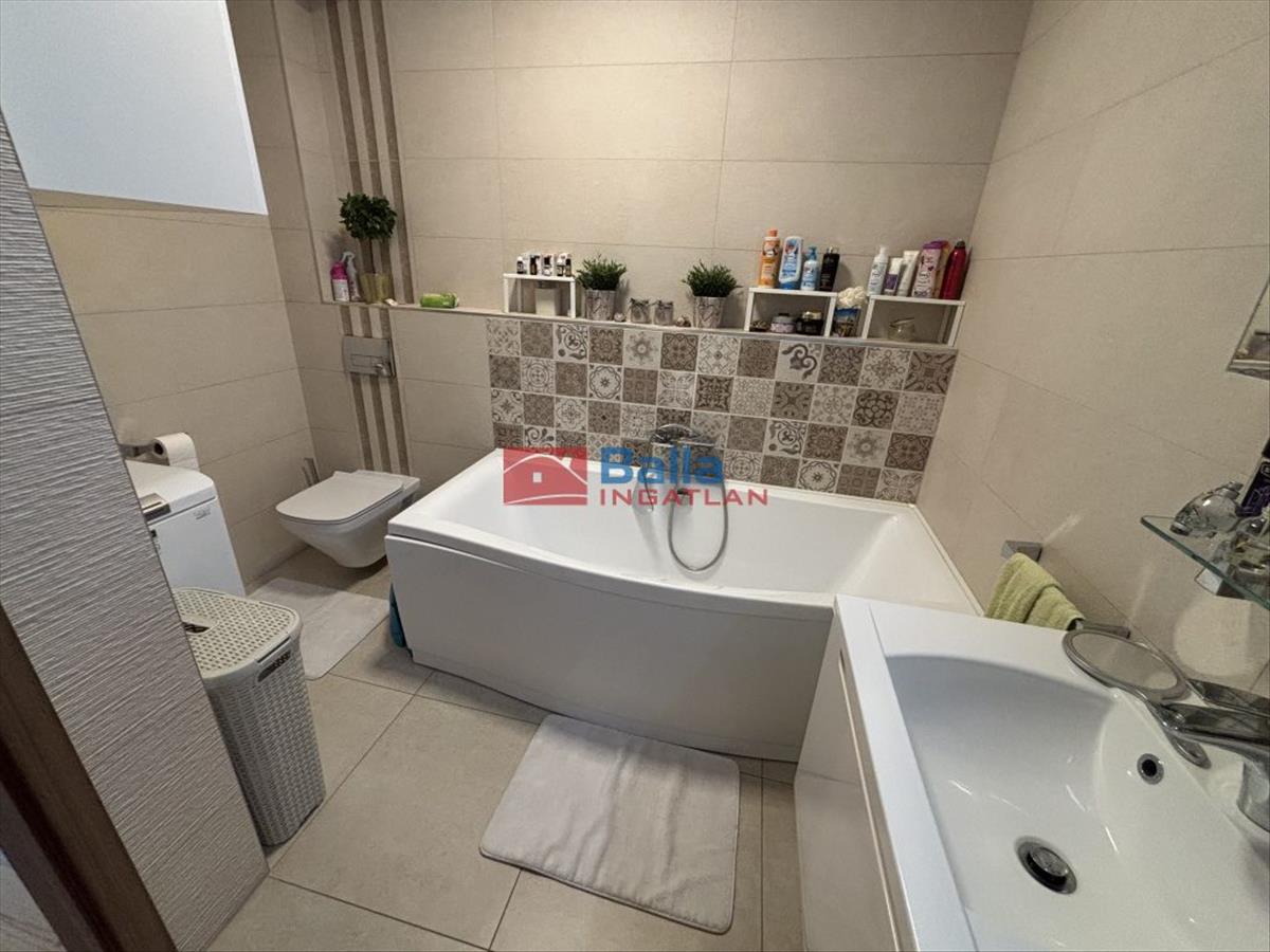 A 82 nm-es lakóterületen amerikai konyhás nappali, 2 hálószoba, 2 fürdő, gardrób és előszoba található. Az igényes beépített bútorok a vételár részét képezik.