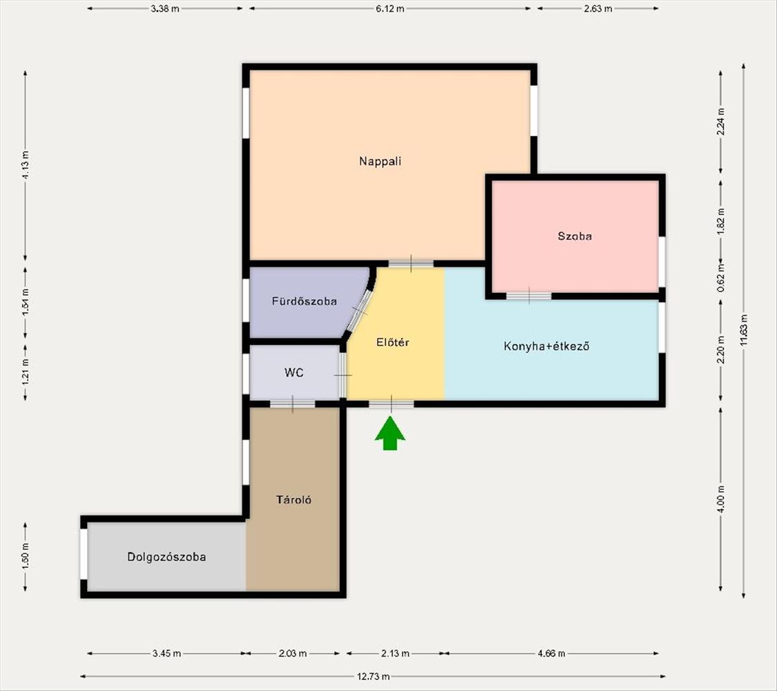 A tetőtéri kialakításnak köszönhetően a lakás valójában jóval nagyobb térérzetet nyújt, mint a nettó alapterület, így dolgozószoba vagy extra tároló is könnyedén kialakítható a bruttó terület kihasználásával.