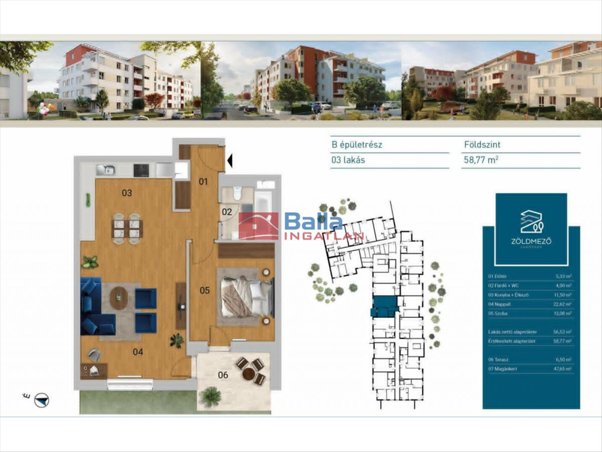 - 48 nm-es privát kert a 6. 5 Nm-es terasszal kapcsolódva,