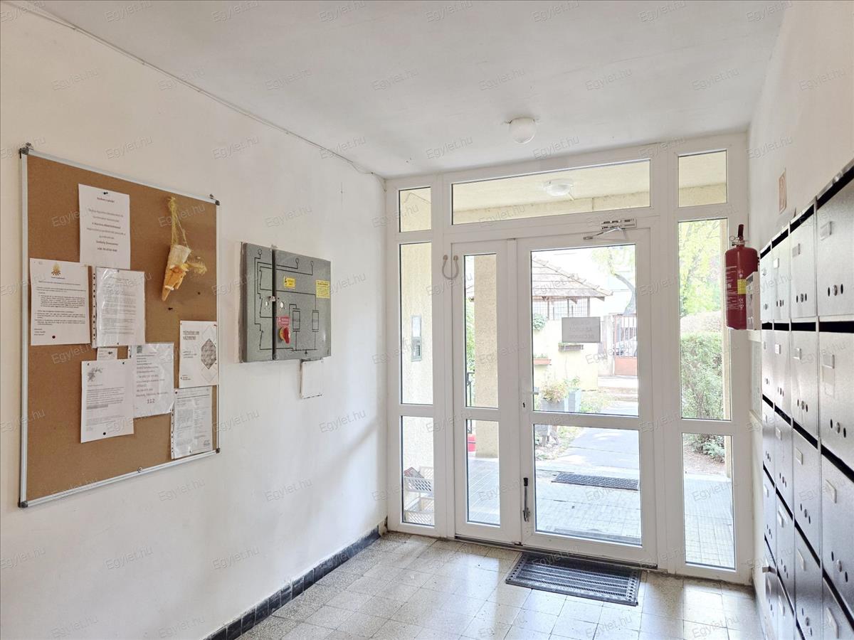 Eladó Mátyásföldön (Budapest XVI. kerület) kertvárosi környezetben egy világos, nyugati tájolású, kertre néző, remek elosztású, 1, 5 szobás lakás a 4 emeletes, társasház földszintjén.