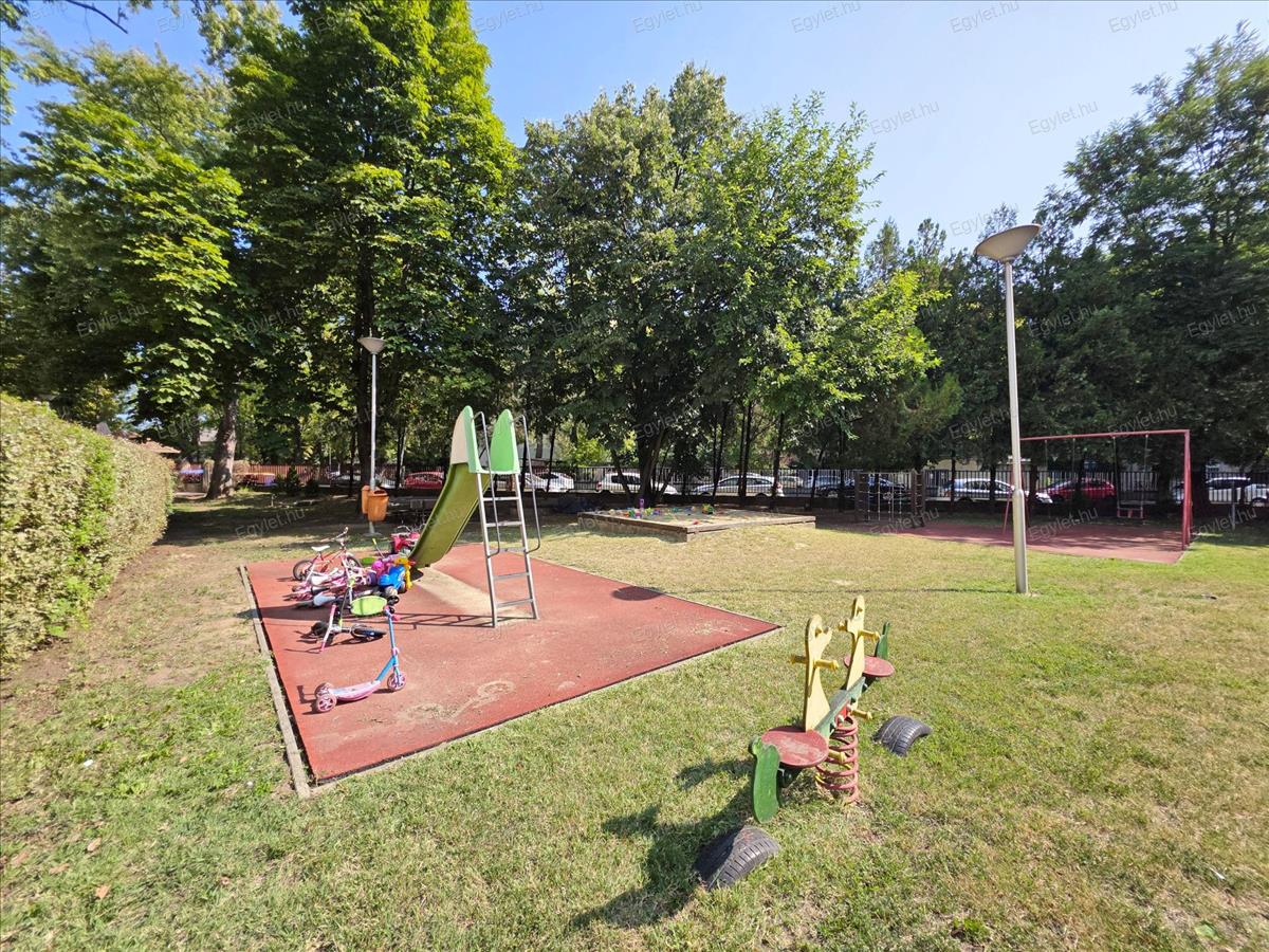 - zöld környezet, hatalmas belső park, játszótér, tűzrakó hely